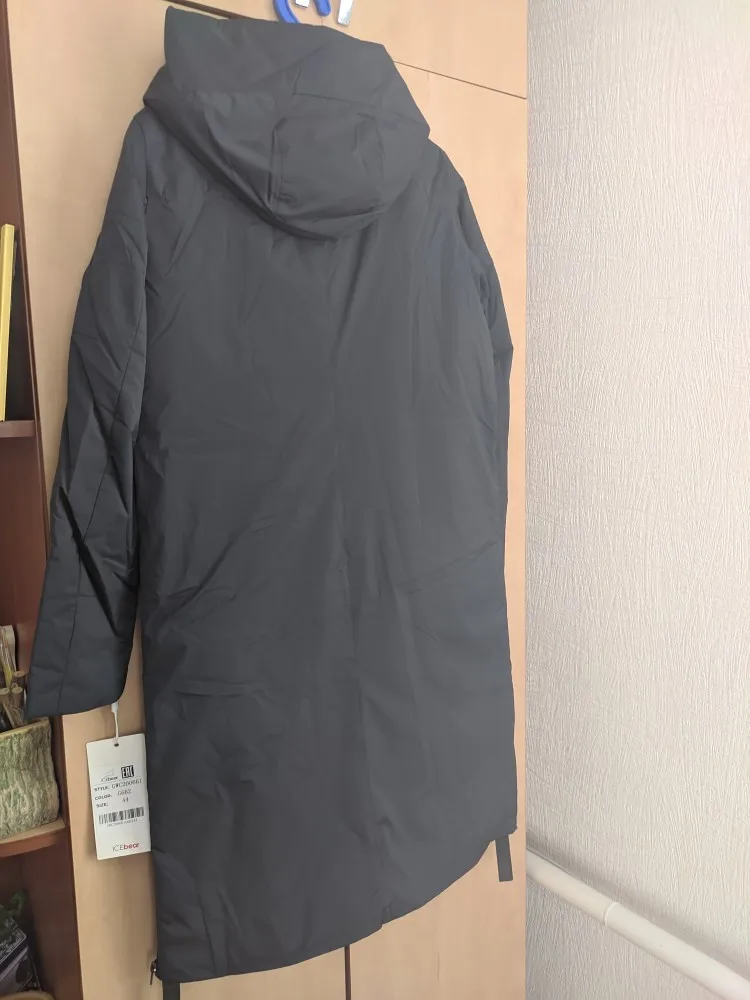 Куртка фирменная, очень нравится! качество отличное! Угадала размер, 52 хорошо на мои параметры ог-106, об-112, рост-163. Ниже колена примерно на 10см. По бокам есть разрезы на молнии. Внутри подкладки есть тонкий утеплитель. прекрасно на весну и осень!