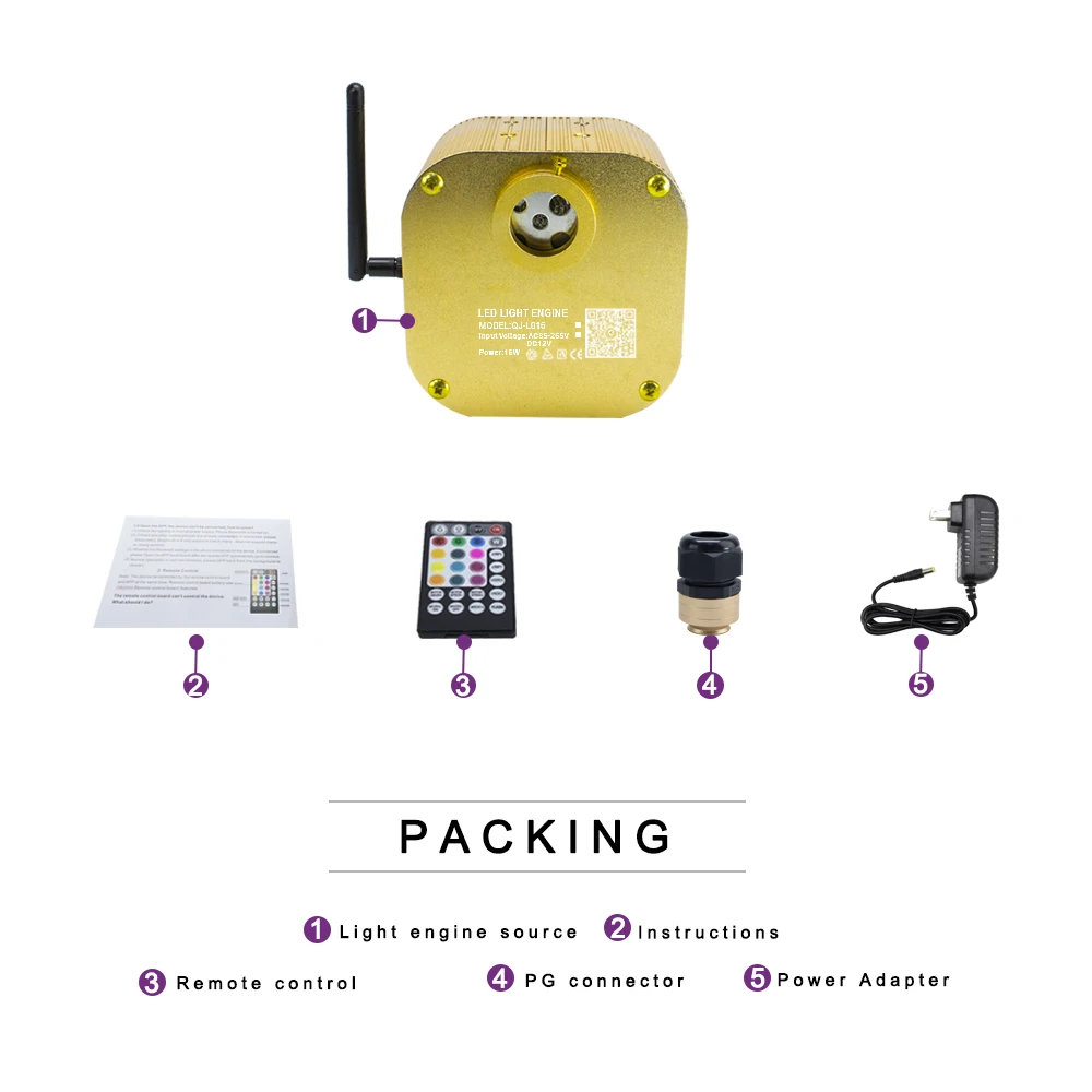 Чип CREE 16 Вт мерцающий RGBW светодиодный драйвер двигателя оптоволоконный источник света умный Bluetooth управление через приложение для всех оптоволоконных кабелей