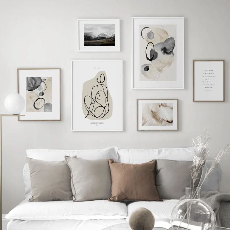 Абстрактные Фигурки узор перо горы скандинавские плакаты и принты настенная живопись холст настенные картины для декора гостиной
