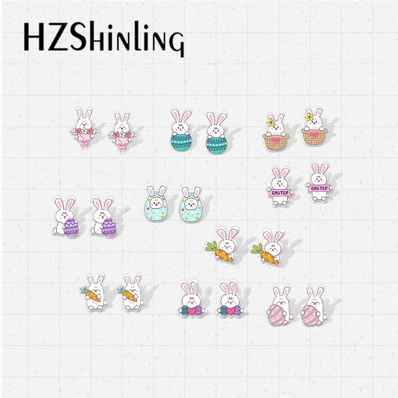 Серьги из акриловой смолы, с пасхальными яйцами, с мультяшными кроликами, 2020