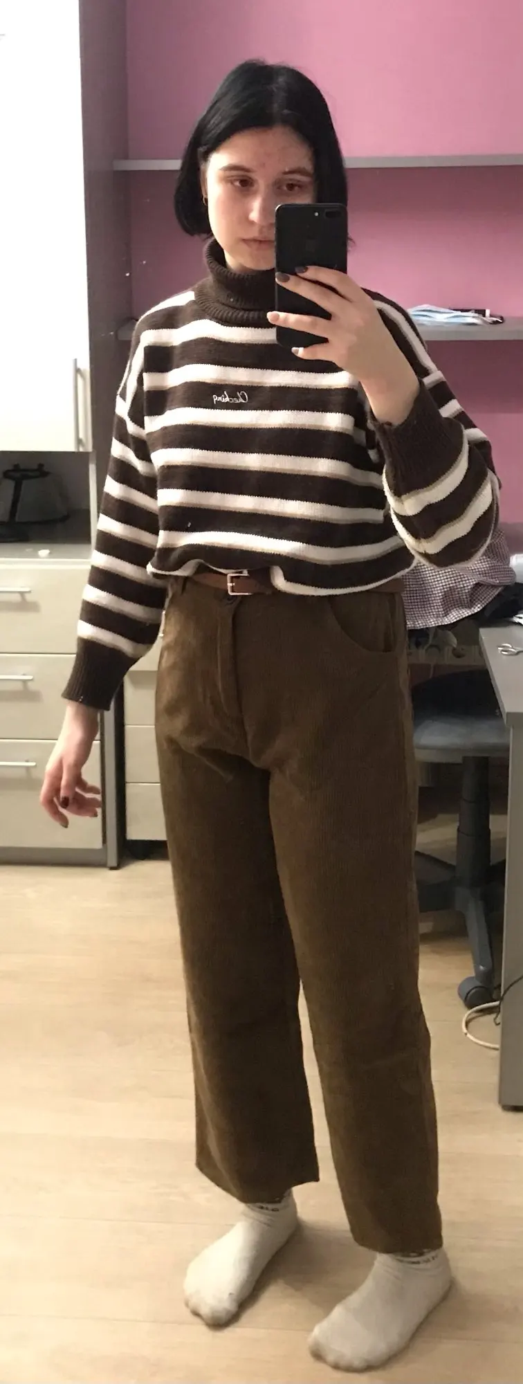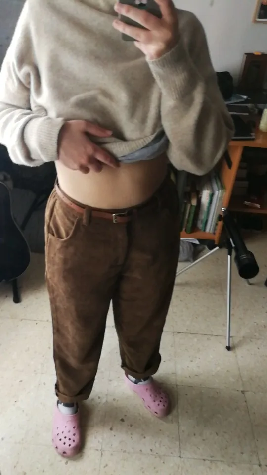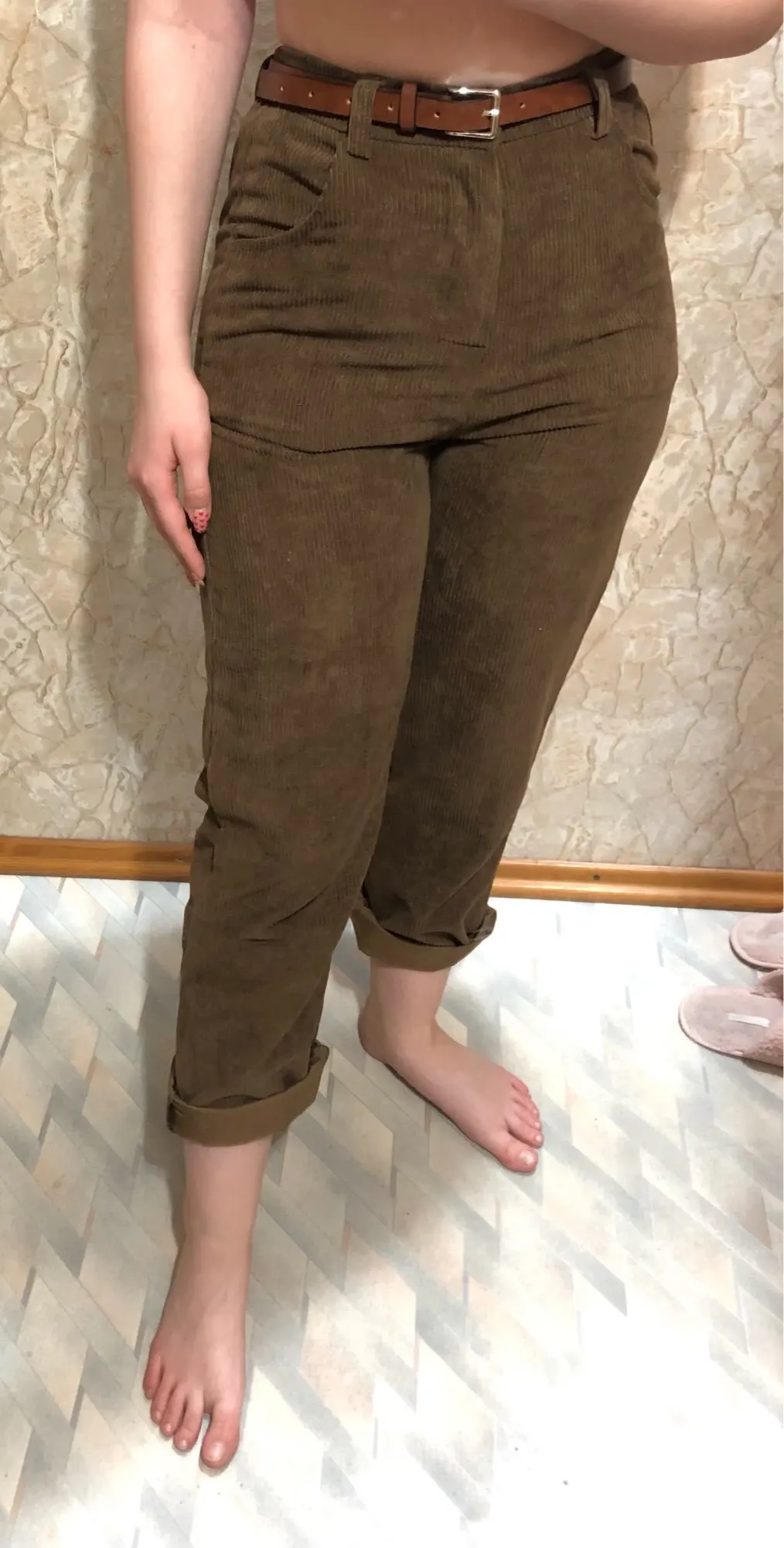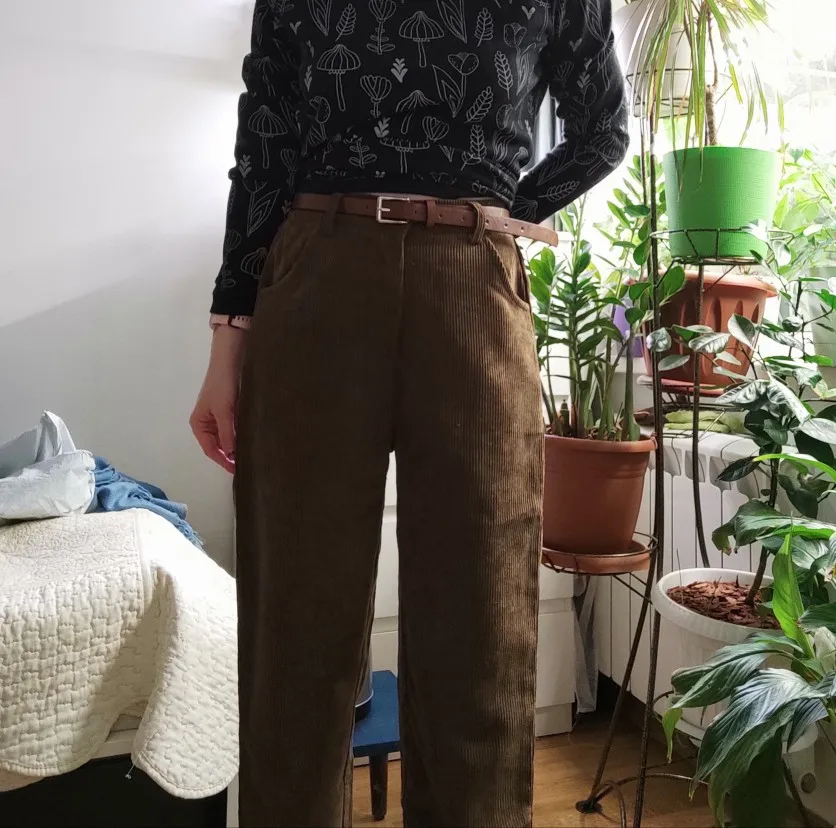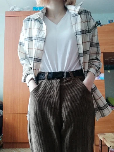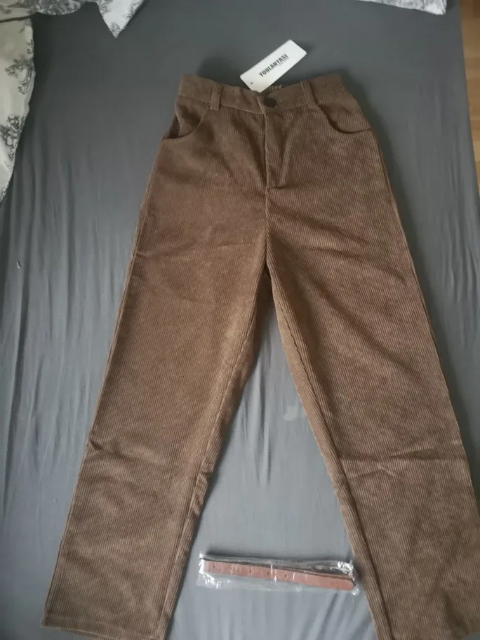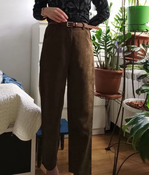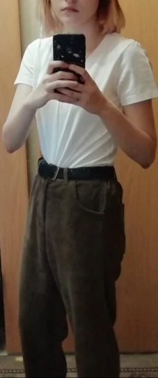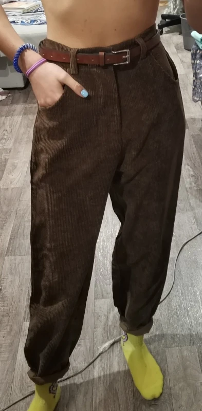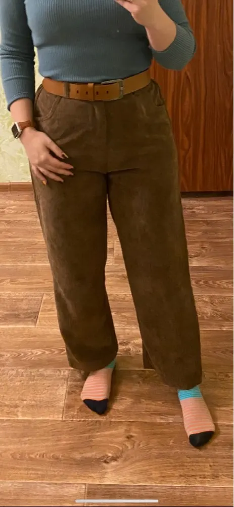 брюки очень классные, в подарок положили резинку и ремень пришли за 10 дней широкие, можно подгибать чтобы лучше смотрелись я думала, что они будут толще, но так тоже норм в принципе талия 65 см, рост 1.59