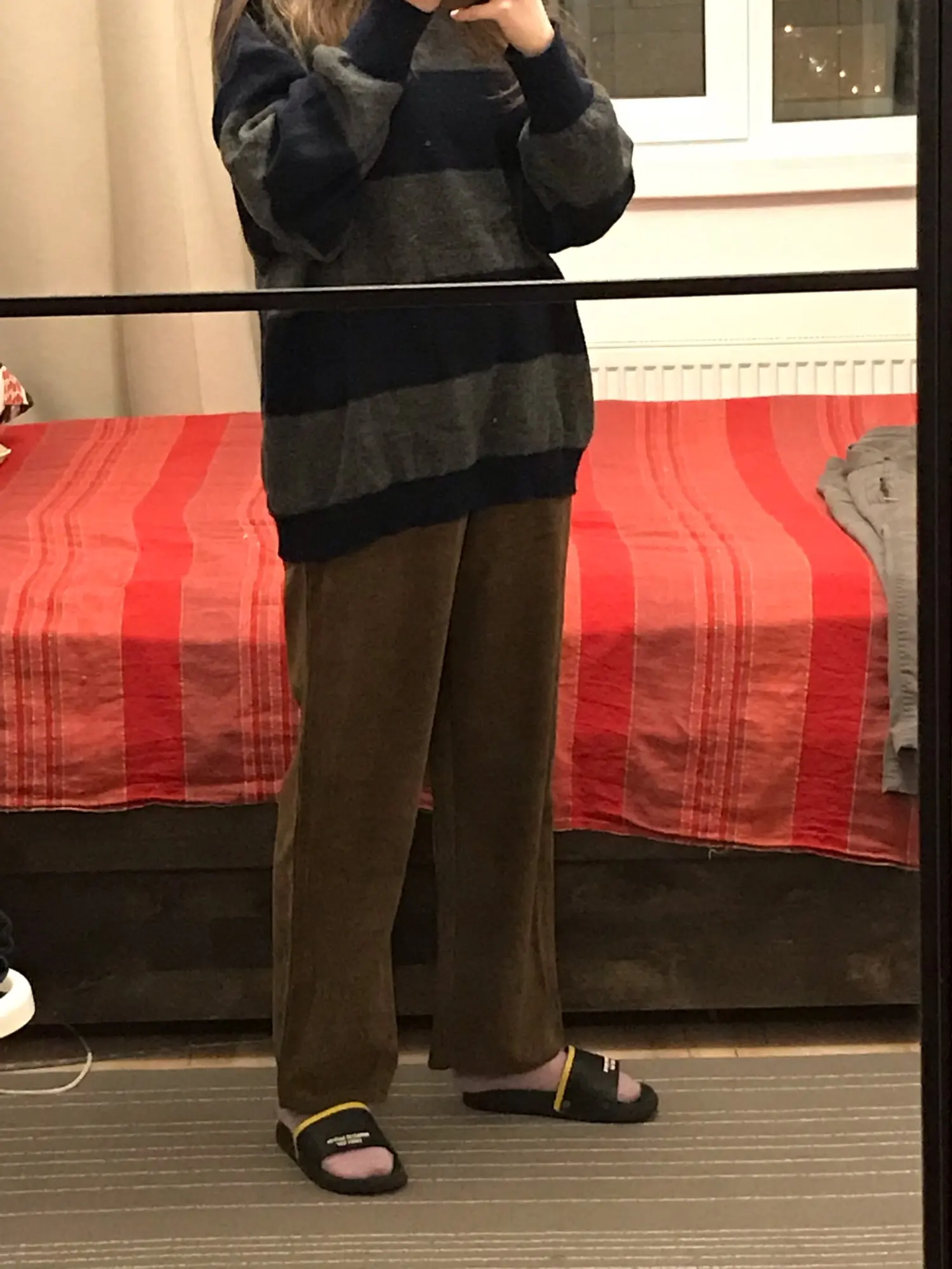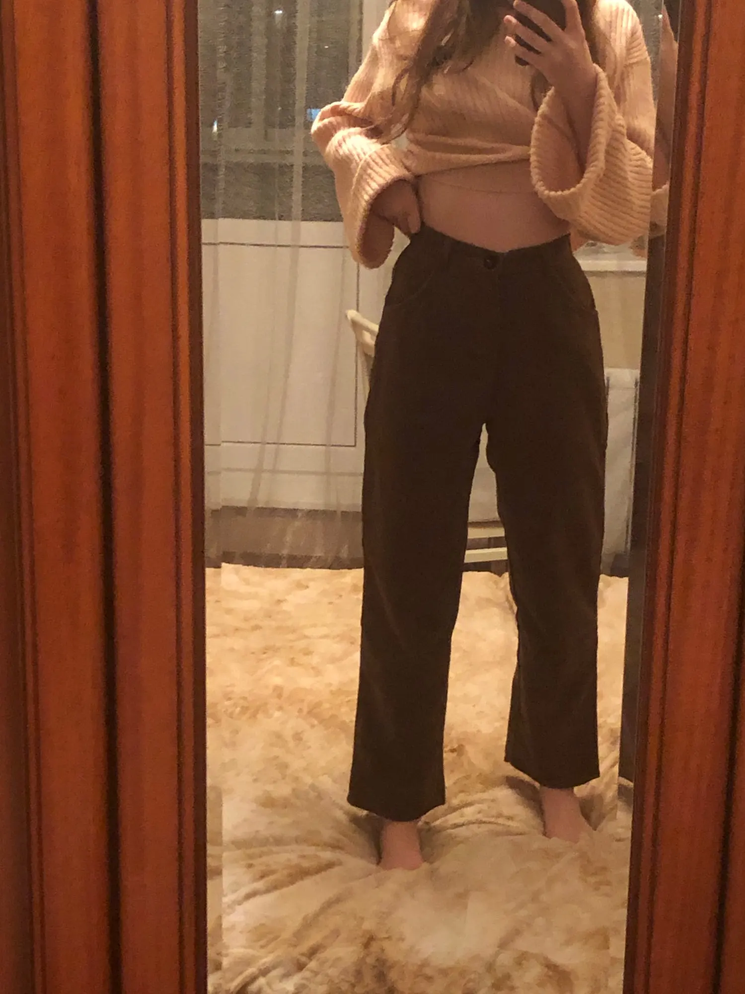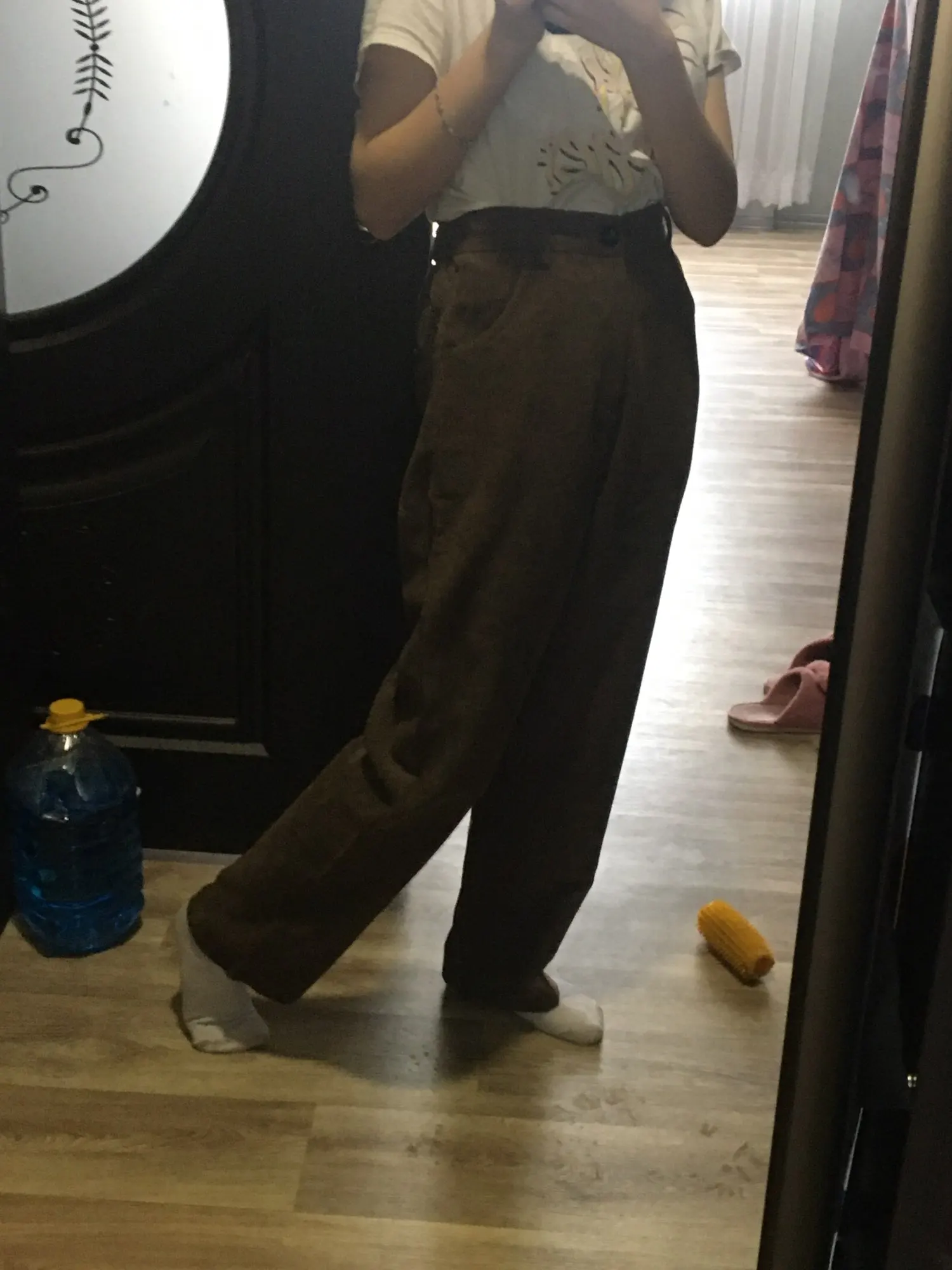 это ваау. они очень легкие и невесомые, зимой на голые ноги возможно будет прохладно, но носить их очень комфортно. материал не очень вельветовый, немного скрипит. цвет коричневатый, кофейный, хотя я думала что будет больше персиковый. на концах они расширенные, закрывают обувь, идеальные. пришли до мо за 3 недели. из минусов могу сказать то, что они совершенно не стройнят, и мои бёдра 100 см в этих штанах ещё шире. но вообще на вкус и цвет.. мой рост 1.63 и размер я брала L, неподкатанные по длине круто подошли, с подворотами не пробовала