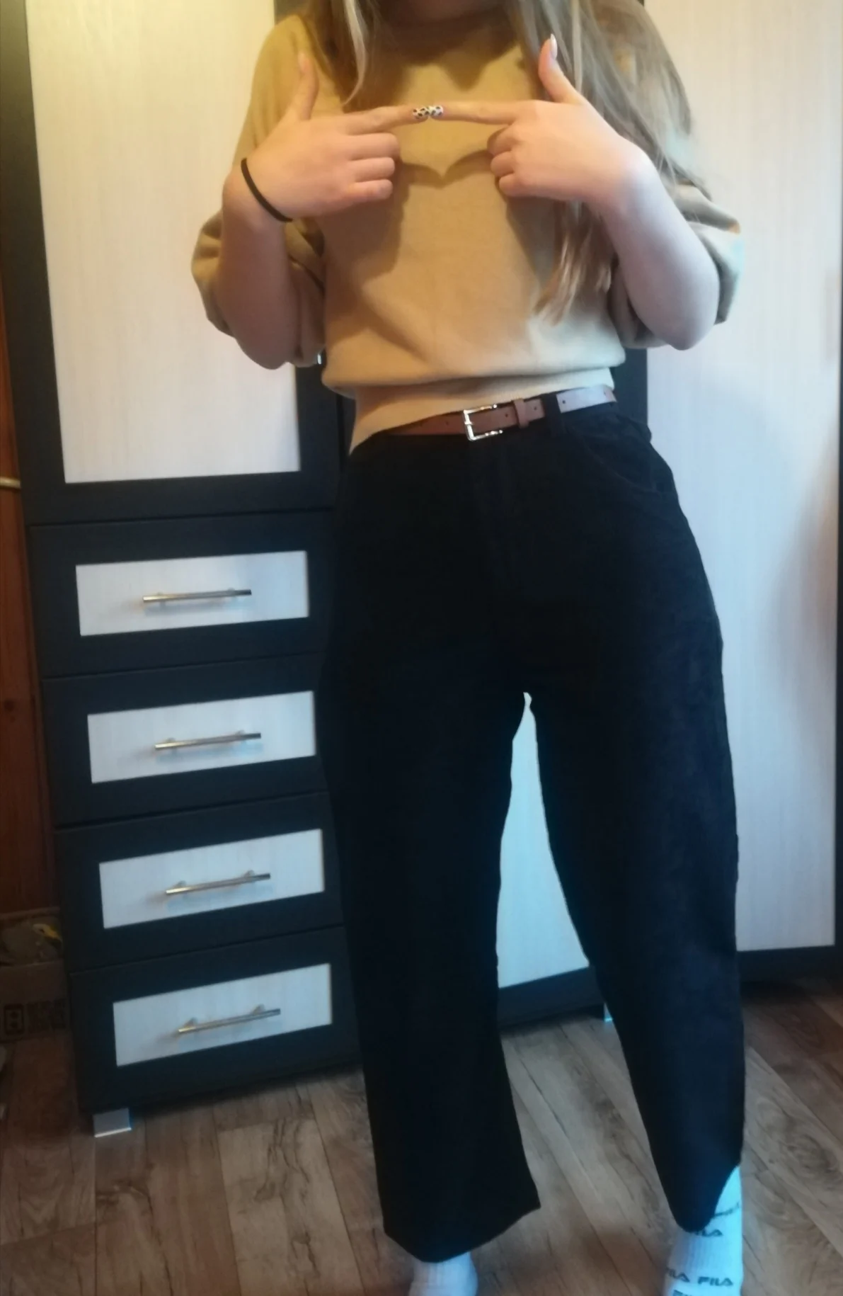 Я влюбилась в эти брюки. На рост 155 размер М сидит так, как я и хотела (≧◡≦) ♡