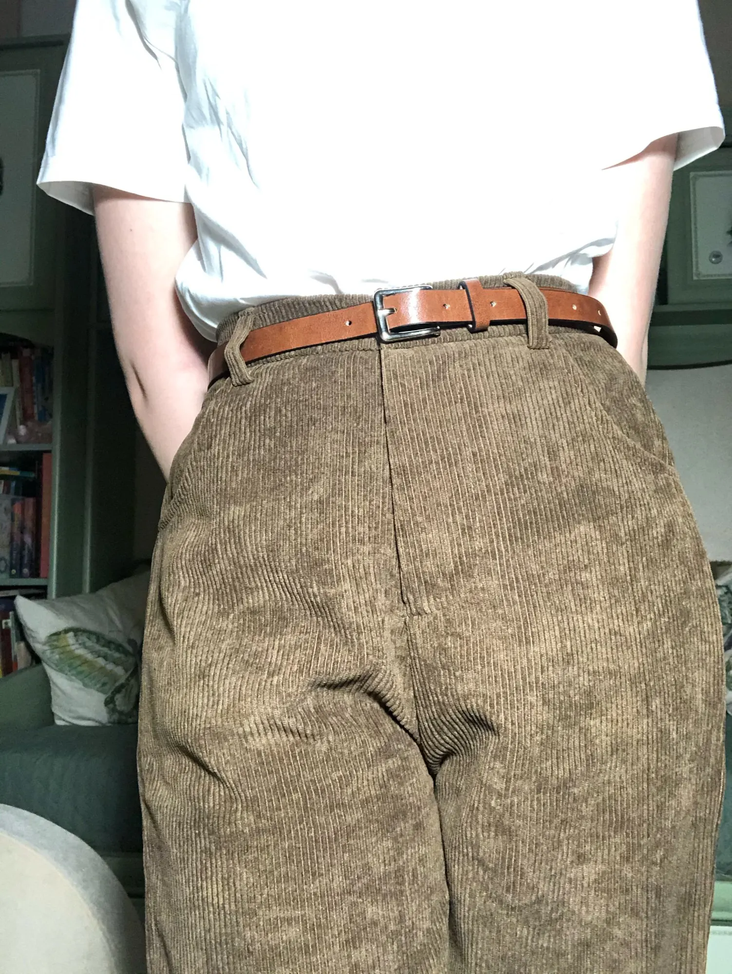 штаны прекрасны и великолепны «почему?» — спросите вы обо всем по порядку и по пунктам: общий вид. как на фото у продавца, по цвету в том числе. сзади два кармана фасон. сразу скажу, размеры, указанные у продавца, правильные. все померила, все +-сошлось. брала XL. мой рост 160см, обхват талии около 70см, обхват бедер 96см. подошли просто идеально(!) как и планировалось, они довольно свободные и не спадают (сидят не совсем плотно, но и не сползают)(резинка прям комфортная). удобная (моднявая)) длина (длина брюк (целиком) 101см): не короткие, но и не волочатся по земле. если подгибать — тоже клево пошив и фурнитура. нитки не торчат, все аккуратно. очень милая пуговка материал. на бирке и этикетке указан материал хлопок 95%, полиэстер 5% (но, пощупав ткань, я подумала, что это синтетика. ладно, не претендую на звание лучшего определителя хлопка на ощупь). вильвет довольно тонкий, но терпимо комплектация. в подарок идет ремень из кожзама и резинка для волос. итог: 10/10