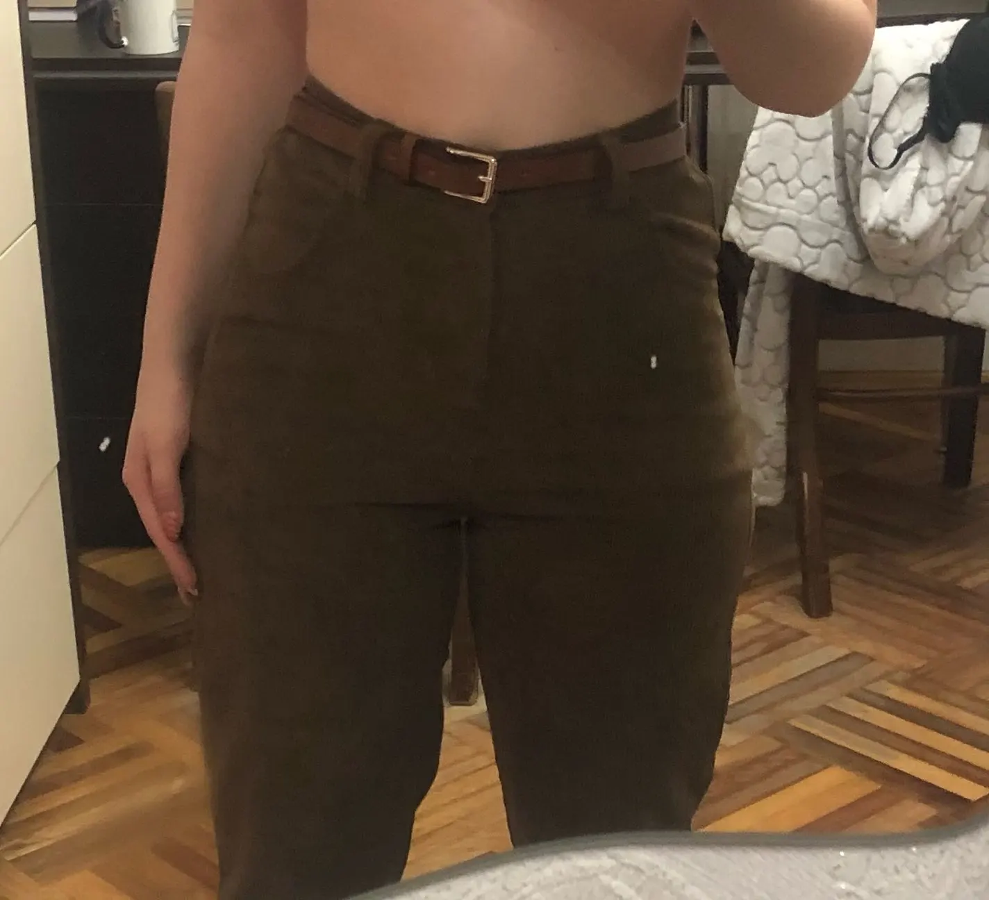 Штаны просто великолепны! Очень понравились. Ремень хороший. Мне немного маловаты в талии, но это не критично. Товар советую!