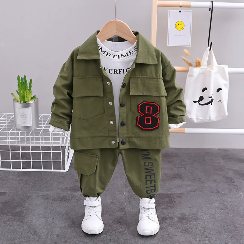 Детская хлопковая куртка, штаны, 3 шт.компл., для мальчиков и девочек