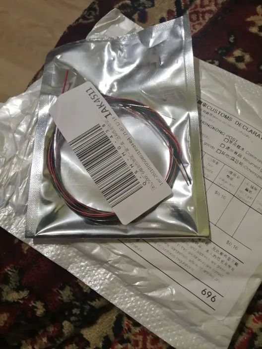 Заказ получили через три месяца. Уже истёк срок защиты. Уже давно купили и поставили другие струны, поэтому пока эти не пробовали