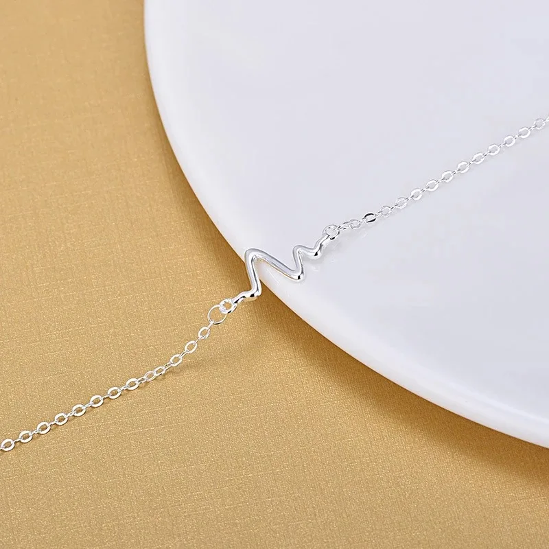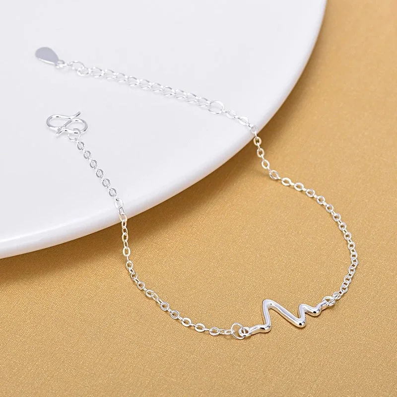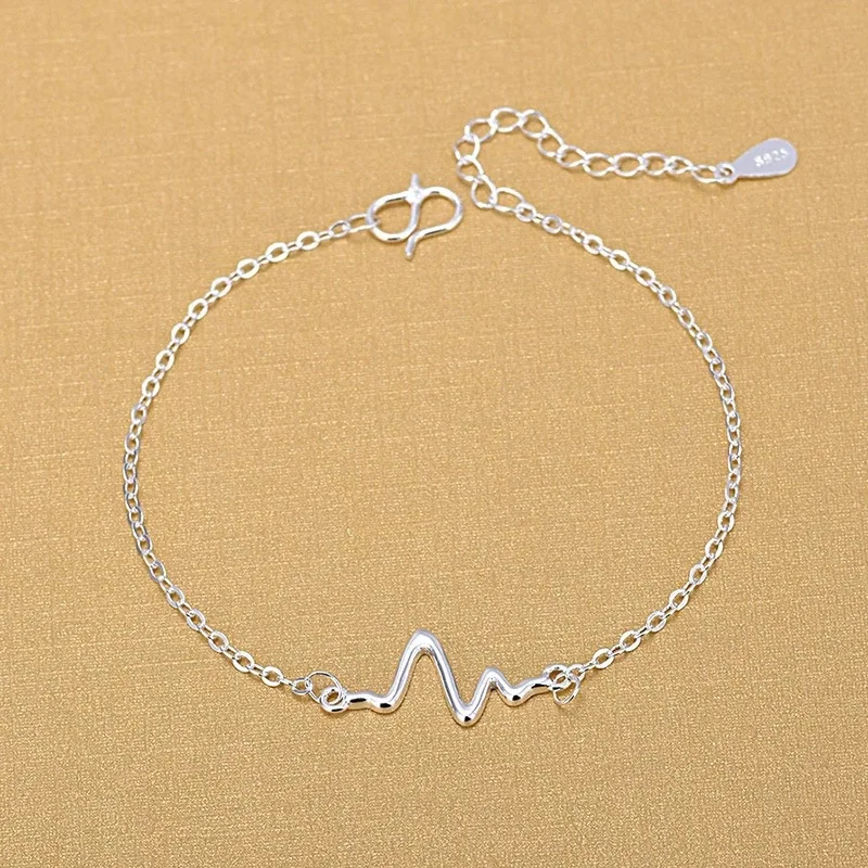 Женский браслет из серебра 925 пробы, с подвеской ЭКГ