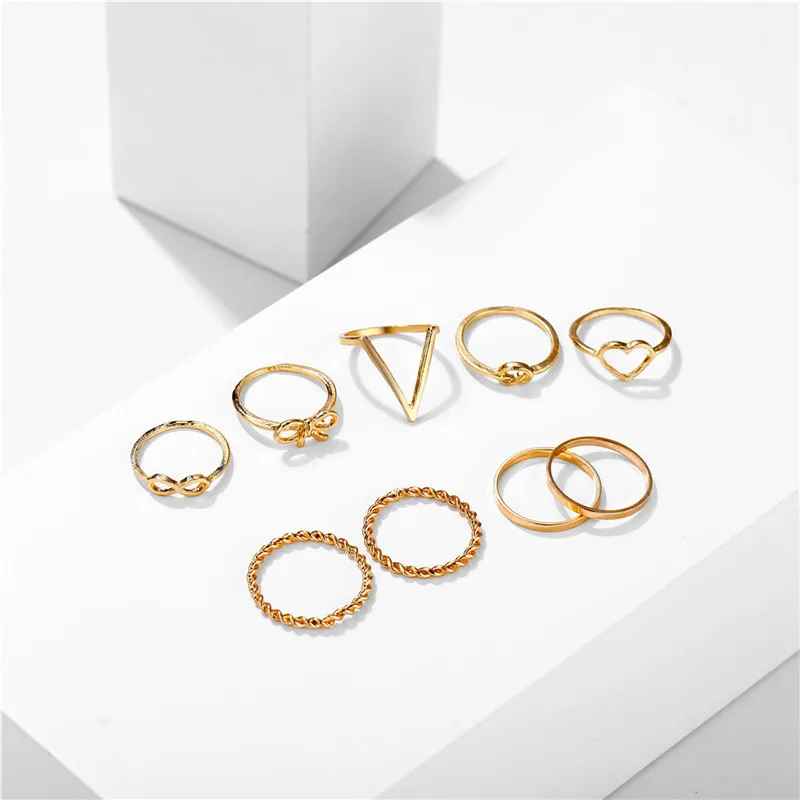 Новинка, набор золотых и серебряных колец для женщин, Винтажное кольцо на палец в форме сердца, банта, 2020, женские модные ювелирные изделия, свадебные подарки