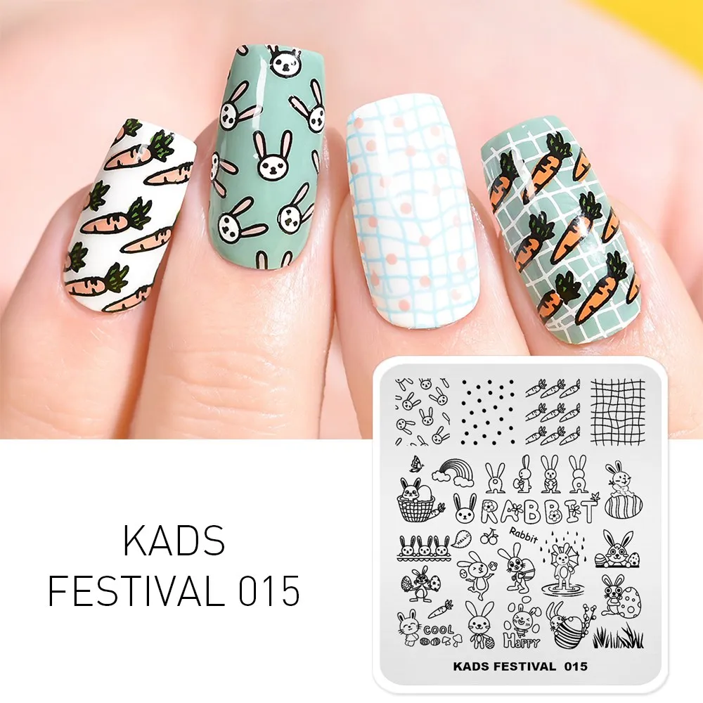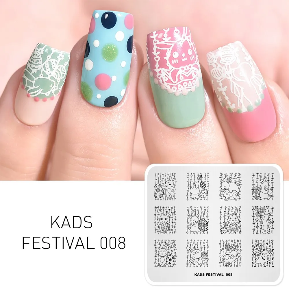 Трафареты KADS для стемпинга ногтей на Пасхальный день, рисунок в виде яйца, кролика