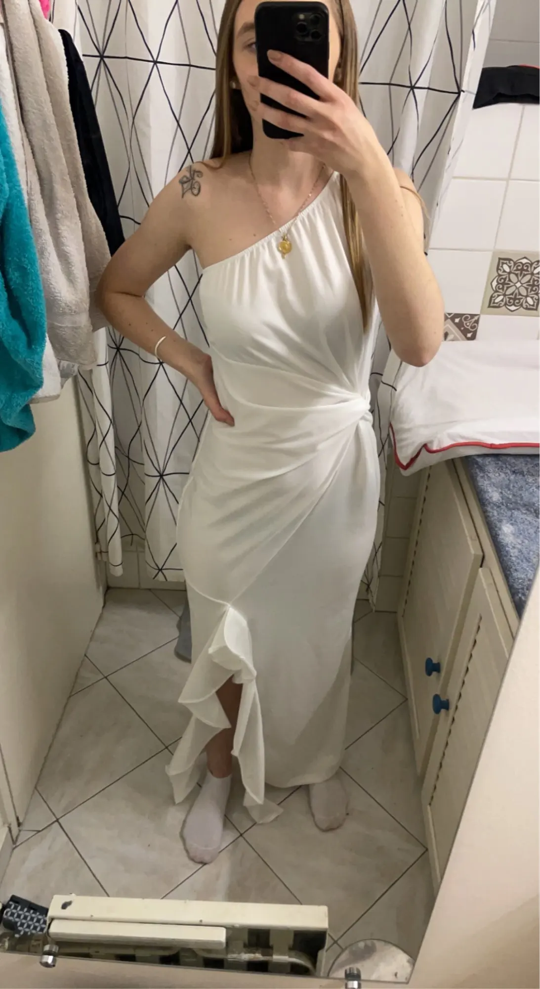 Женское длинное платье с оборками и высоким разрезом, повседневное облегающее платье с открытыми плечами, 38 #, лето 2019