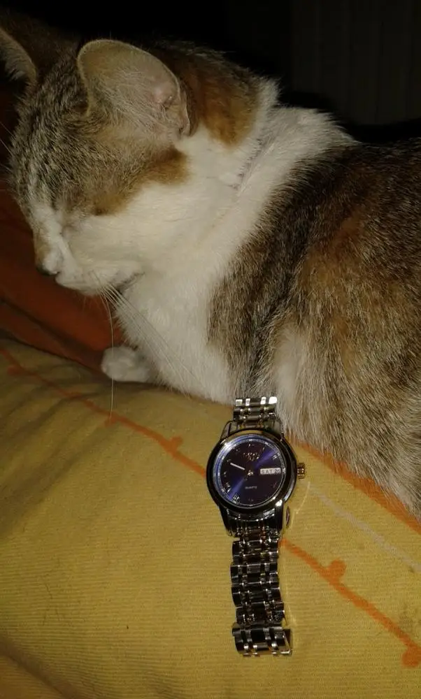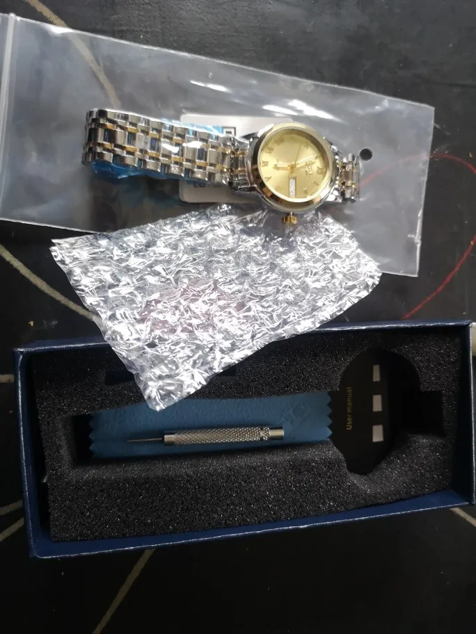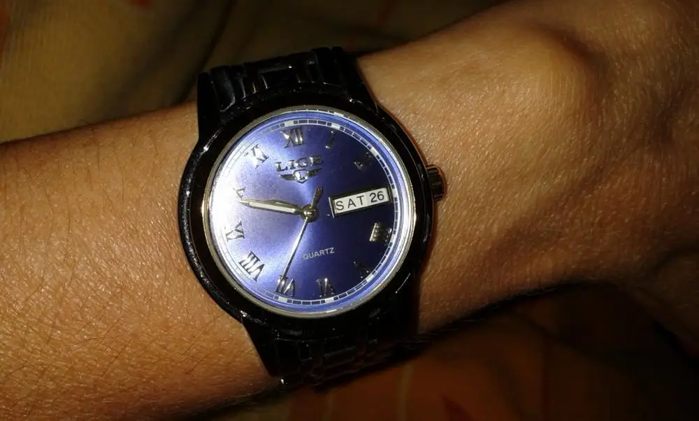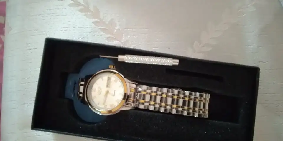 Товару ставлю 3*, дальше напишу, почему. Получила заказ очень быстро, буквально пару дней после оформления (заказывала из России, живу в Москве). Визуально всё было круто, убрала 3 звена из браслета, т.к. он был большеват, стала носить. Не прошло и нескольких дней, как на циферблате значки дней недели начали заедать и перестали верно показывать, какой сейчас день недели. Пыталась исправить ситуацию, самостоятельно прокручивая дни, но это стало невозможно: числа от 1 до 31 крутятся, а вот поле с сокращениями дней недели не получается, не прокручиваются. Может подскажете, кто с этим сталкивался, что делать? Хорошо, что для себя брала, а не на подарок, иначе было бы очень стыдно
