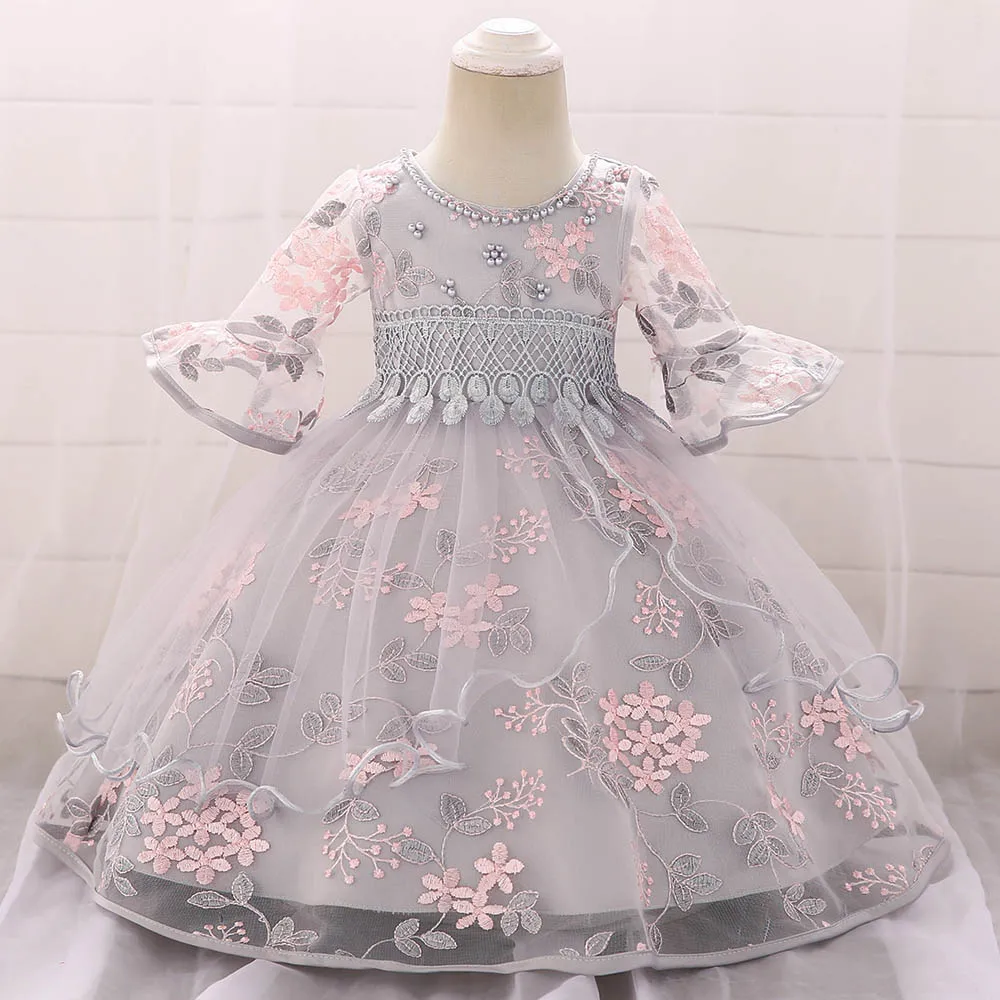 Летнее платье для новорожденных девочек на 1-й день рождения, кружевное платье принцессы с цветочным рисунком для маленьких подружек невесты, детские платья