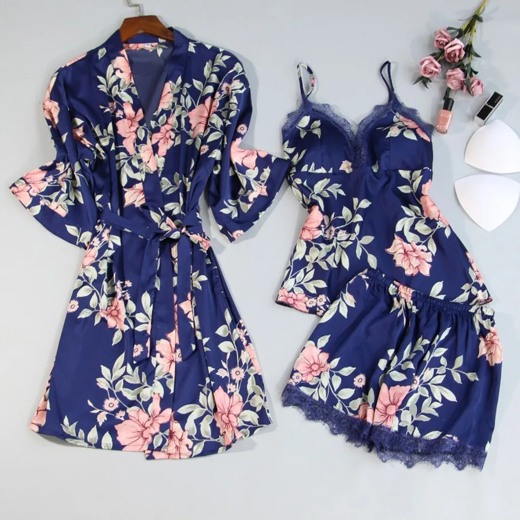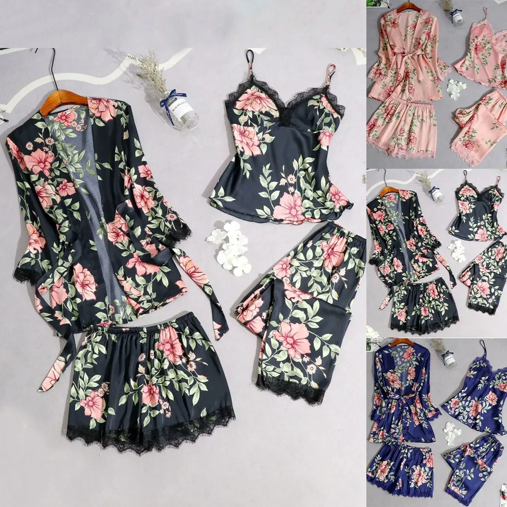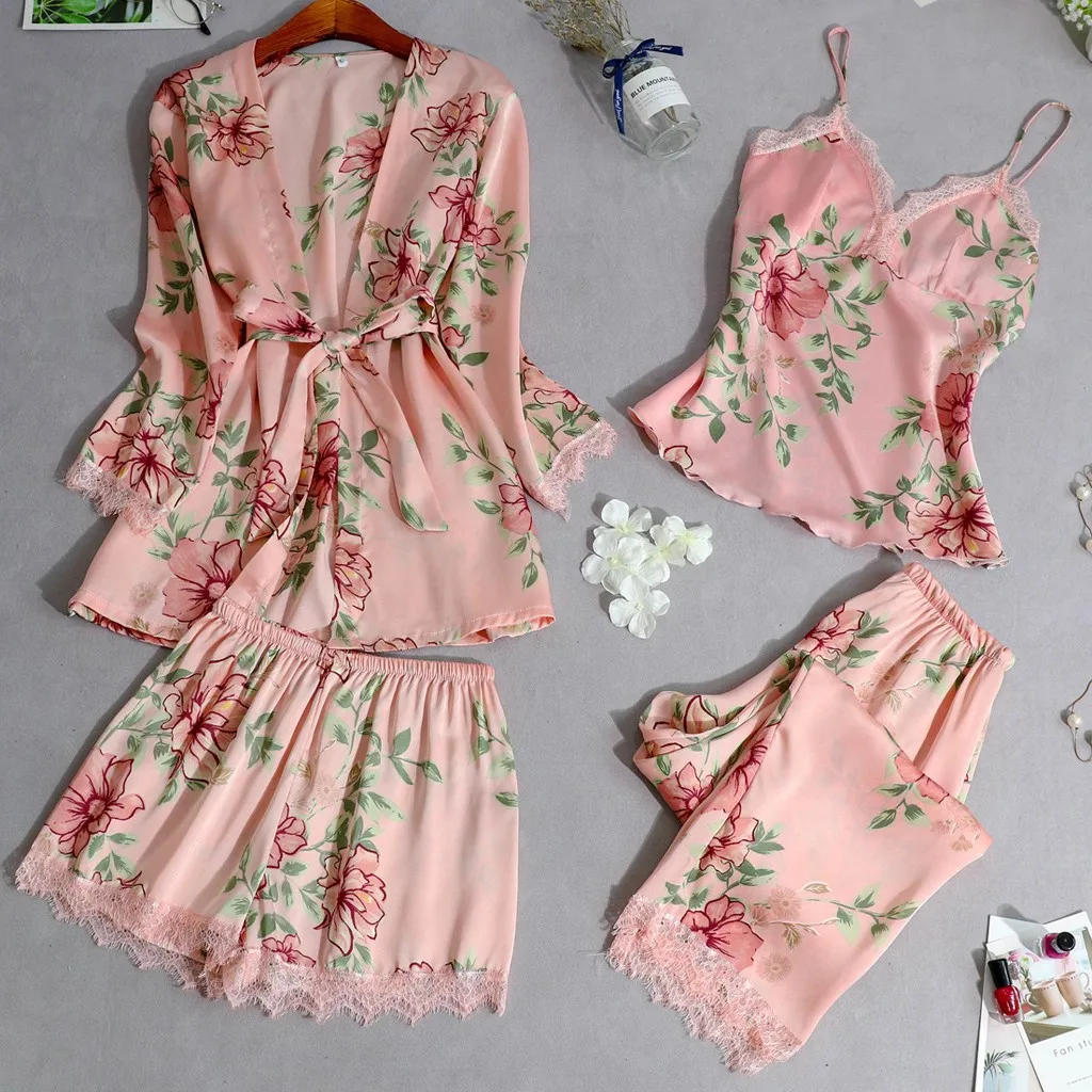 Упаковка: 1 комплект атласных пижам с кружевом