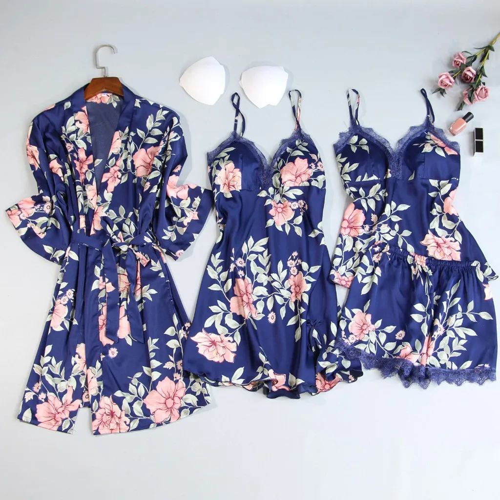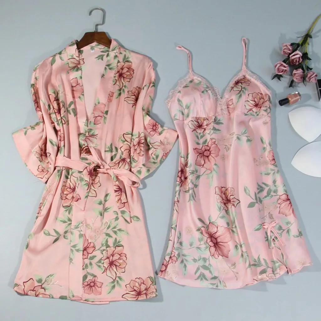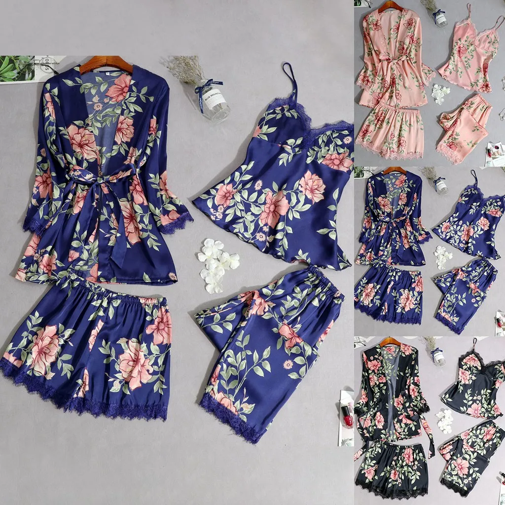 Упаковка: 1 комплект атласных пижам с кружевом