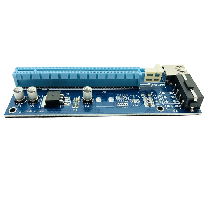 Особенности:Абсолютно новый и качественный.· Безопаснее, эффективнее, практичнее· С 3 твердыми конденсаторами, что делает блок питания видеокарты более стабильным и безопасным.· С 15-контактным кабелем питания SATA на 4-контактный, усиленный источник питания, так что блок питания видеокарты может быть независимым от питания материнской платы, что снижает нагрузку на материнскую плату.· Слот для видеокарты с использованием оригинального импортного разъема, так что контакт будет лучше.· Кабель USB 3,0 имеет двойное экранирование: плетеный экран и экран из алюминиевой фольги для обеспечения быстрой и стабильной передачи данных.· Совместим со слотами 1x, 2x, 4x, 8x, 16x PCI-E.· Слот PCI-E 16x с замком для легкого снятия и фиксации видеокарты, так что графика не будет падать из слота.· Кабель питания изготовлен из чистой медной проволоки, что позволяет избежать перегорания при добыче полезных ископаемых.Характеристики:· Разъем питания: 4-контактный· Длина кабеля USB 3,0: 60 см (прибл.)· Размер платы: 127 мм x 43 мм x 15 мм (прибл.)· Использование: Совместимо с графической картой· Функция: для майнинга BTC ETH и т. д. OKB NEO XRP BCH EOS LTC