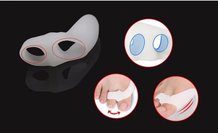 Супер мягкий материал защищает пальцы ног, предотвращает поворот пальцев внутри и снаружи, для предотвращения натоптышей, мозолей, волдырей, коррекции боли в ране при вальгусной деформации обуви.