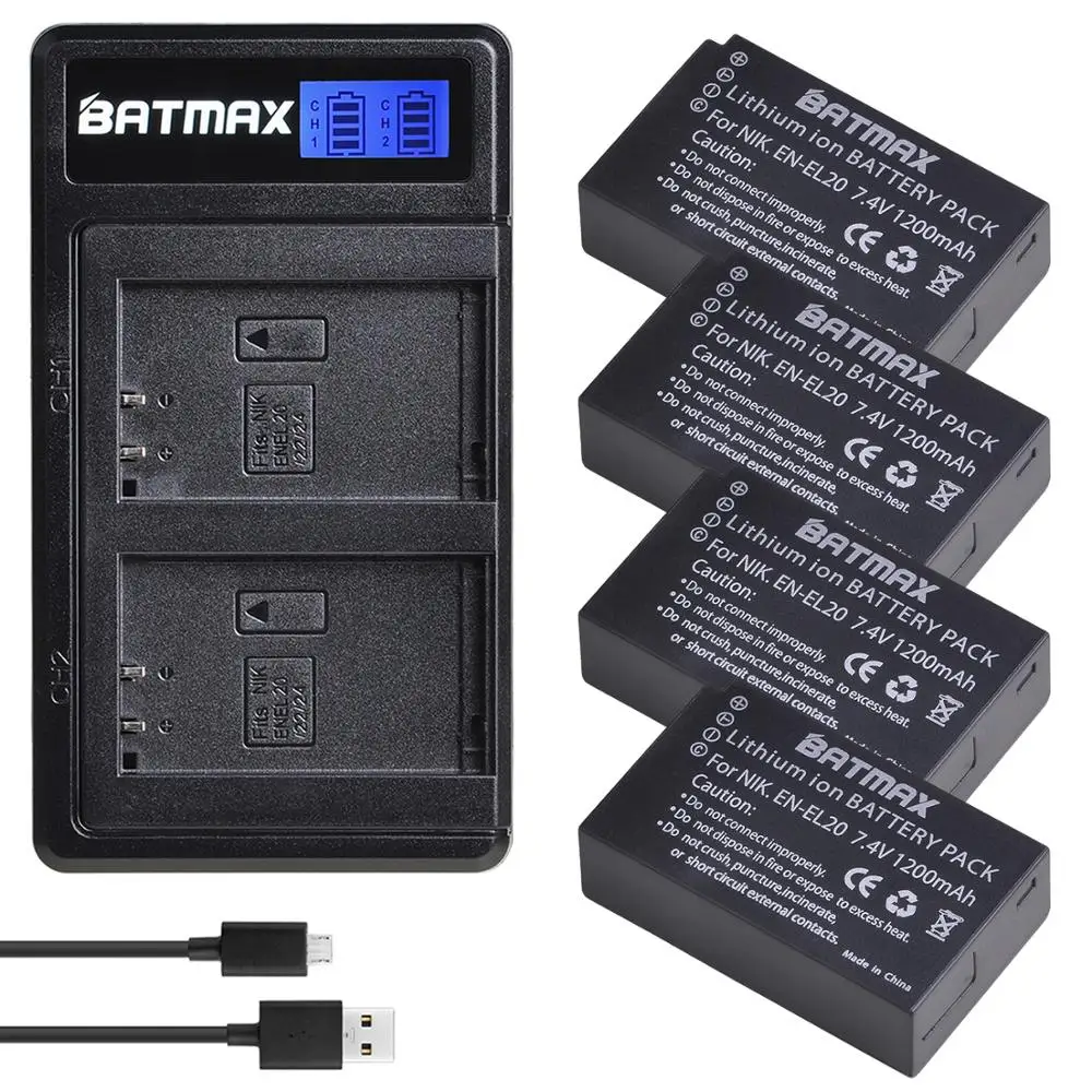 Батарея Batmax EN-EL20 EN-EL20A EL20 en el20 + новое двойное зарядное устройство с ЖК-дисплеем для Nikon Coolpix P1000 Nikon1 J1, J2, J3 Nikon1 AW1