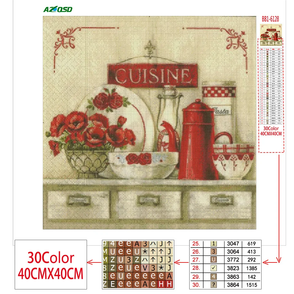 AZQSD Алмазная вышивка для кухни DIY рукоделие картина Стразы алмазные мозаичные чашки подарочные наборы ручной работы