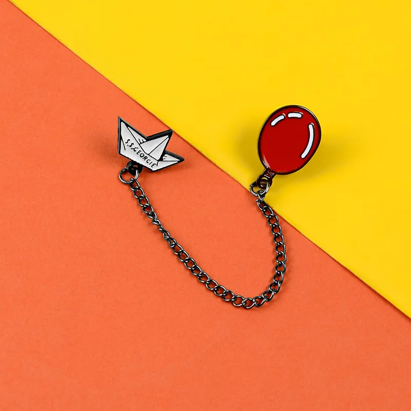 Эмалированная брошь на булавке SS Georgie Paper Boat Red Balloon, Стильная джинсовая брошь, джинсовая одежда, модная игрушка, ювелирные изделия, подарок для друзей