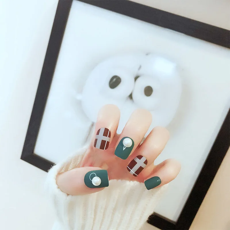 24 шт., декоративные искусственные акриловые ногти в японском стиле