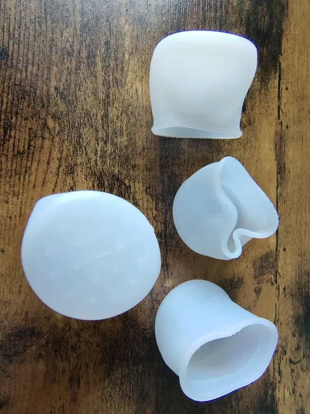 Колпачки неплохие, резиновые. Не обратила внимание, что они серого цвета... Смотрится не очень. Они широкие, 4 см в диаметре. Внутри пупырышки. Брала на ножки для кресла икеа, спадают если двигать кресло. В общем буду искать другое применение. А в целом описанию соответствуют. Доставка до Москвы около месяца. Спасибо :)