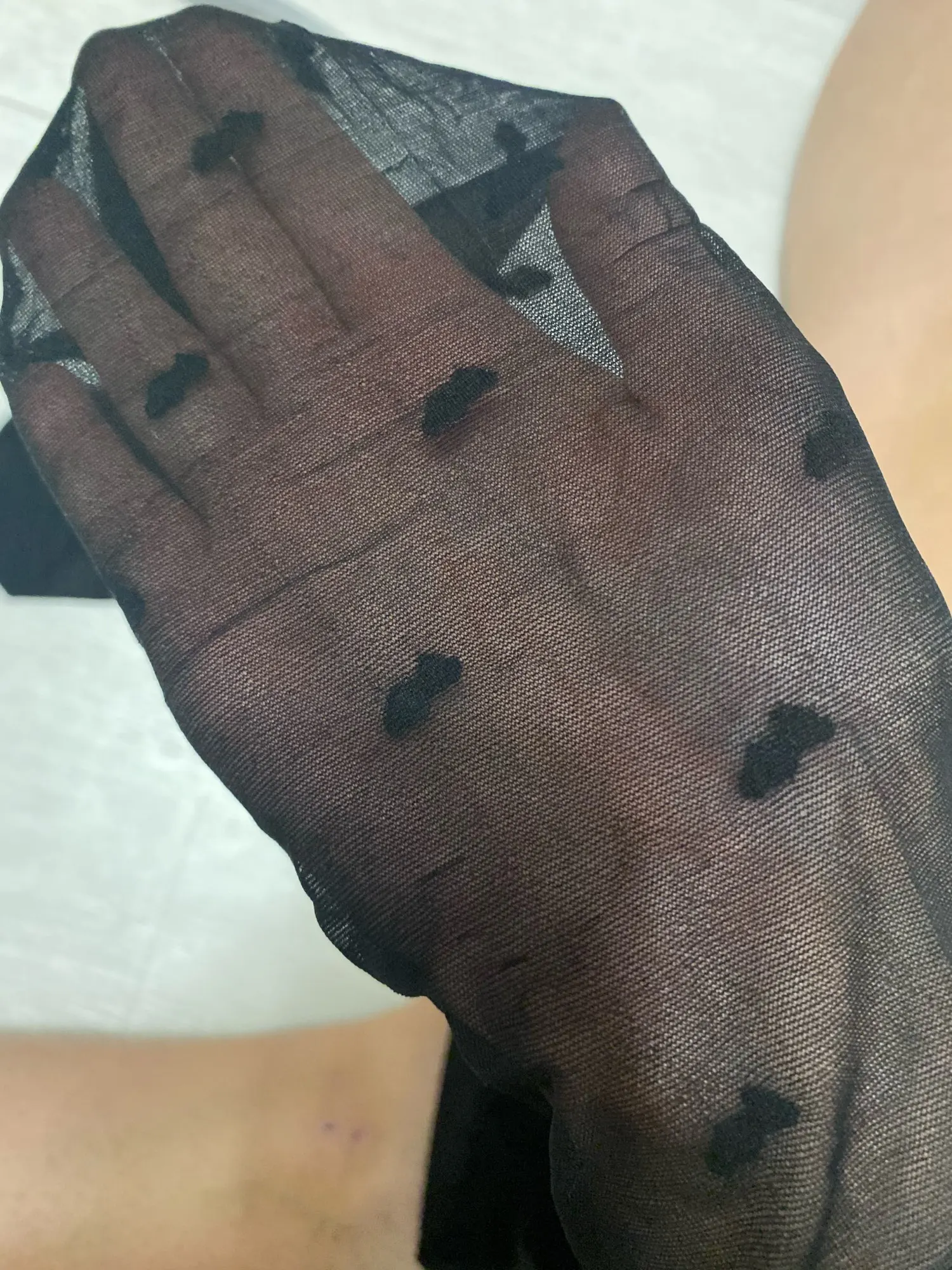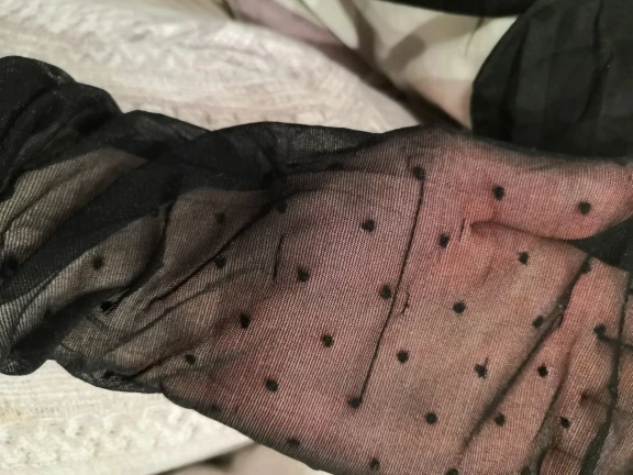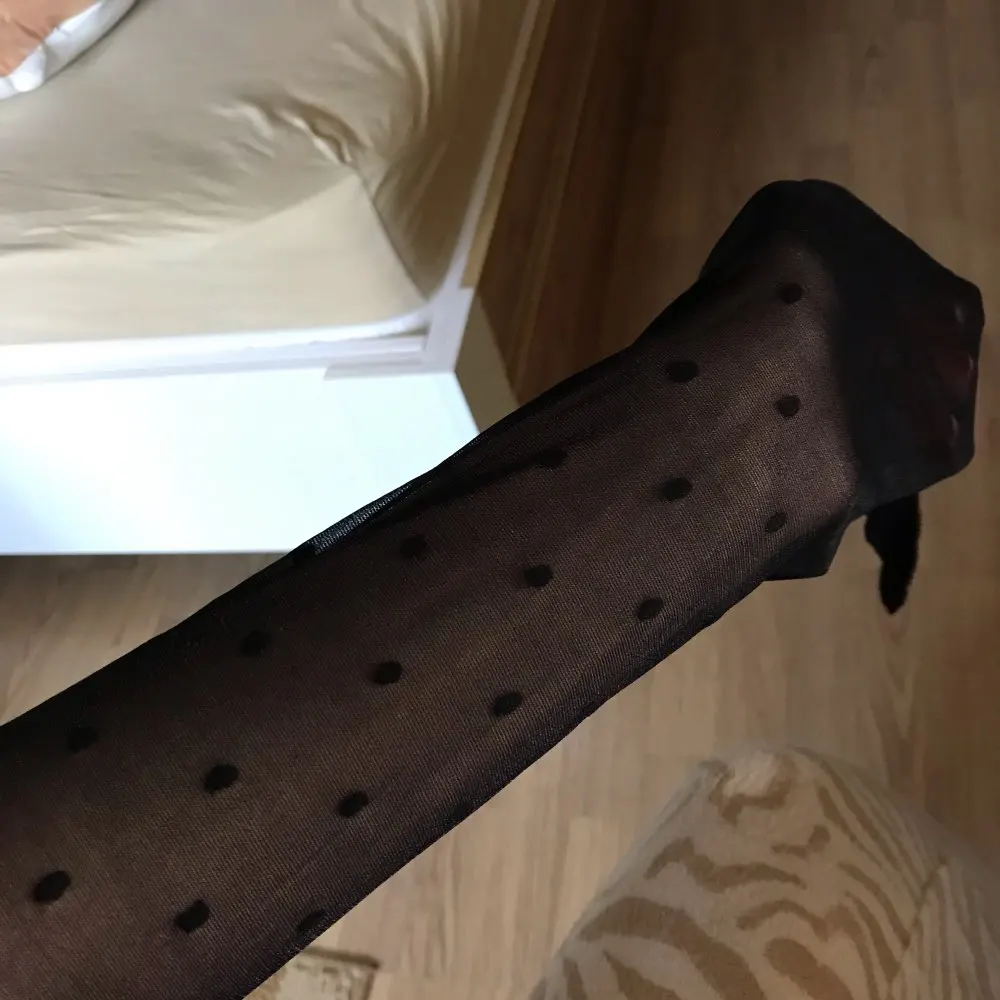 Надеялась, что они окажутся крутой находкой за 120 рублей, но нет. На фотографиях получились мило, но носить сама их не буду. И Вам не советую) Пришли спустя два месяца после заказа. Упакованы были как носки. Уже привыкла к магазинным упаковках, не сразу поняла, что пришли именно колготки. Материал тонкий. Достаточно дешёвый. Размер похож на привычную двойку в капроновых колготках. По росту (172 см) еле натянула на себя. И ладно бы материал, которому за 120 ₽ можно многое простить, но горошек меня просто сразил С обратной стороны он ворсистый. И этот ворс создаёт неровные пятна, вместо кружочков. Выглядят вблизи неопрятно