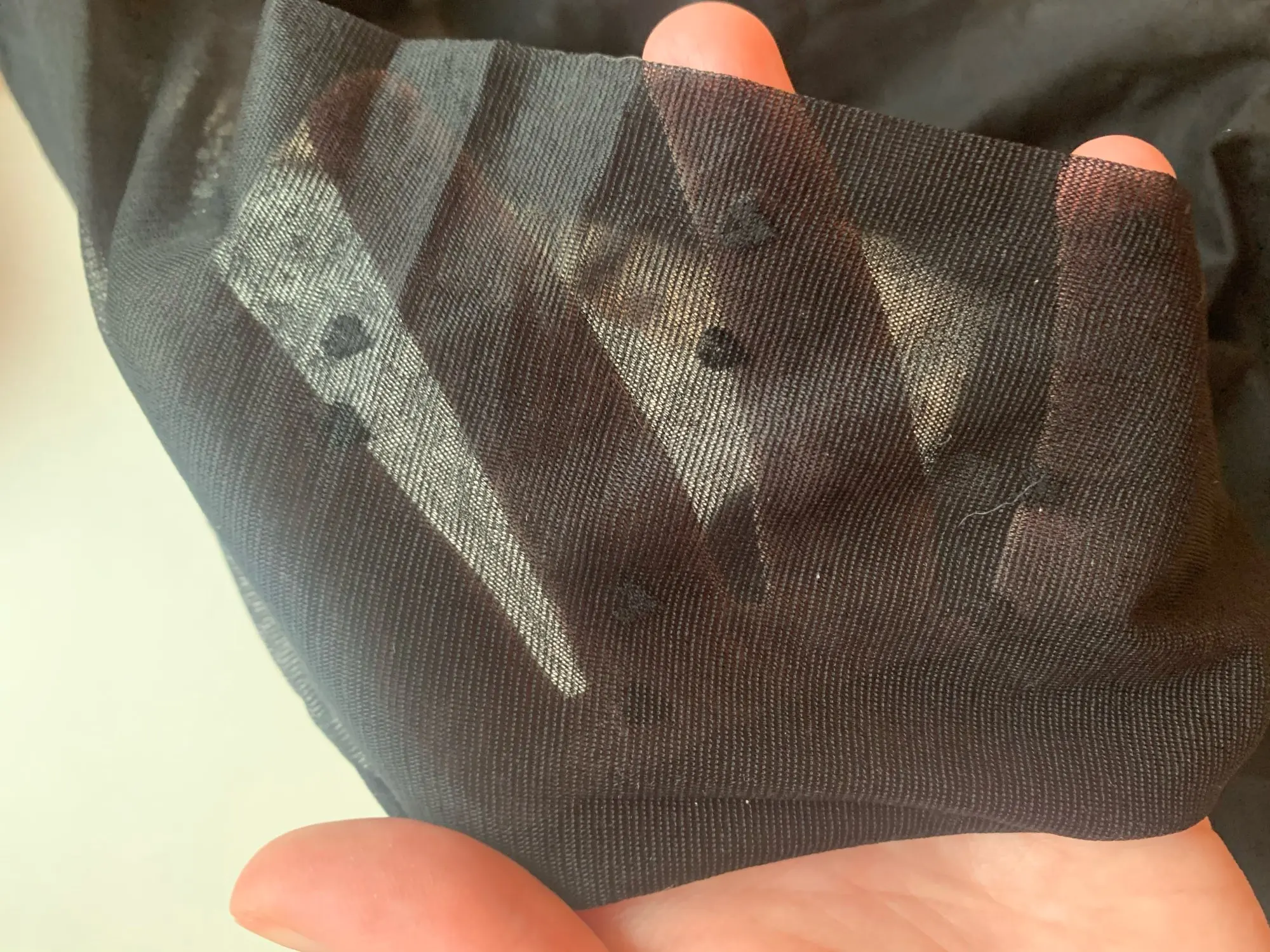 Колготки хорошего качества, только есть одна проблема, какие-то чёрные полосы, это не разводы, после стирки так и остались. Немного маловаты. Стоят своих денег