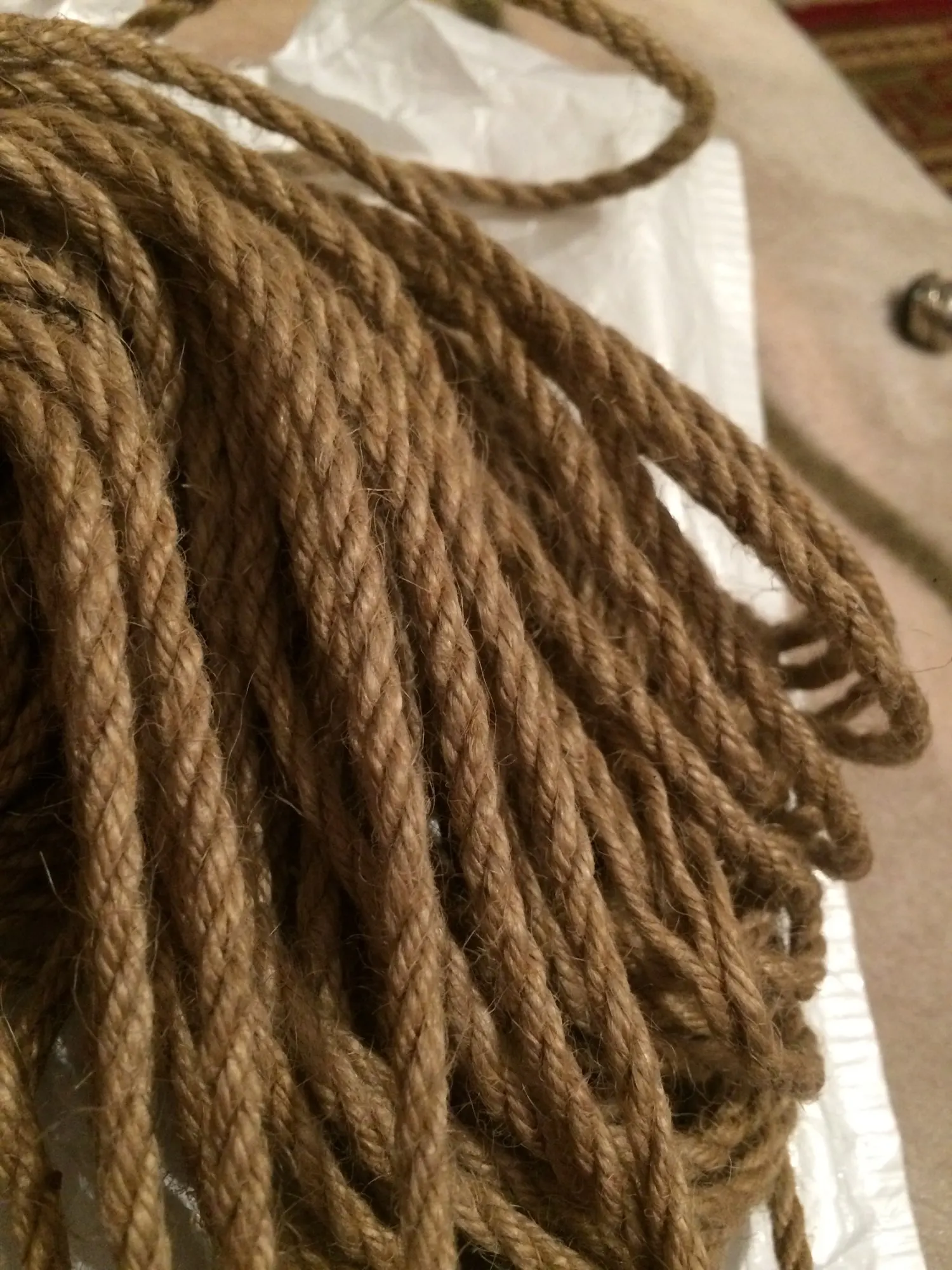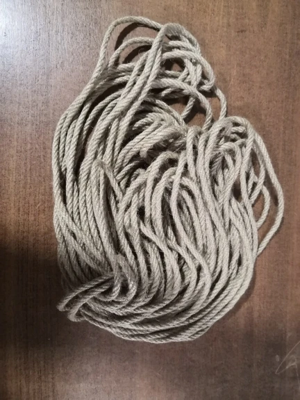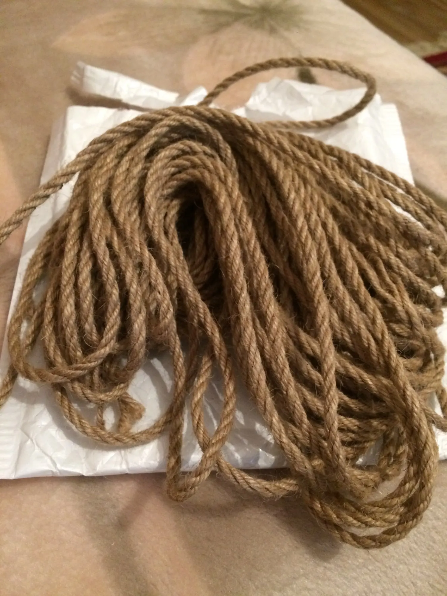 Веревка размером вроде норм а длину не мерила. Посмотрим хватит обмотать косяк двери или нет...