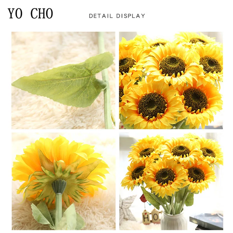 YO CHO искусственный Шелковый Подсолнух, свадебные подружки невесты, цветы, мини-букет, детские дышащие украшения для дома, вечерние украшения для свадебного стола