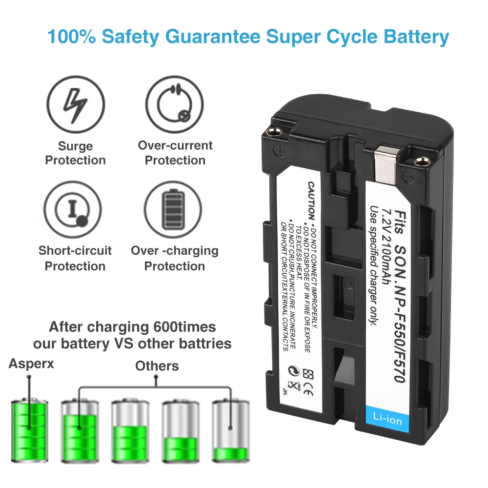 Батарея Модель: NP-F550/NP-F570/NP-F330 батарея дляSONY Камера Ёмкость: 2100 мА-ч Напряжение: 7,2 V Тип батареи: литий-ионный аккумулятор