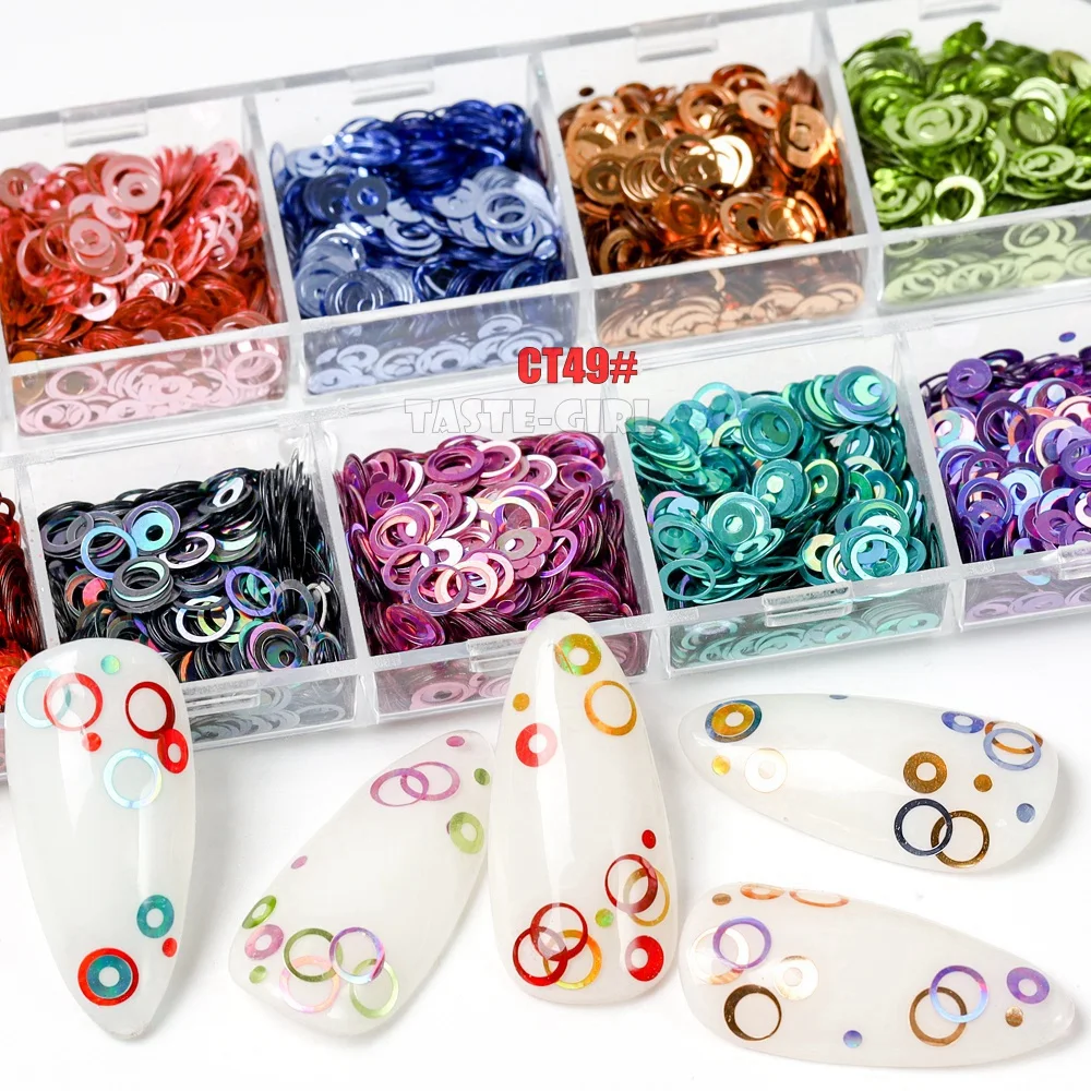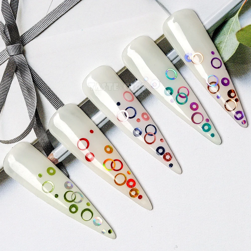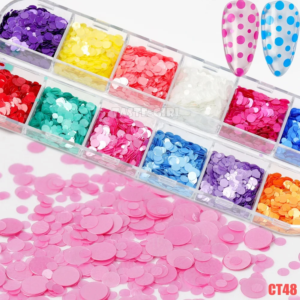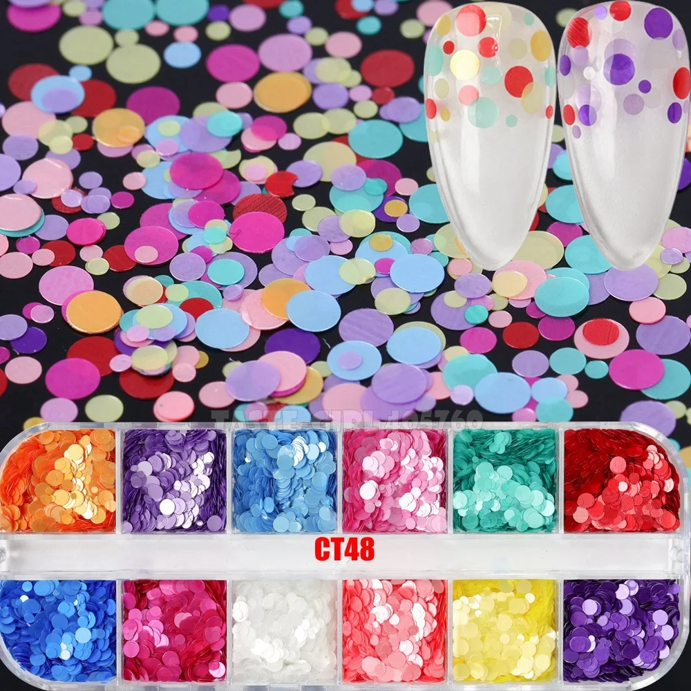 Набор наклеек для ногтей, 12 сетоккоробка, смешанные размеры, сказочные радужные круглые голографические круглые Блестки, Блестки Дизайн ногтей ломтиков блесток