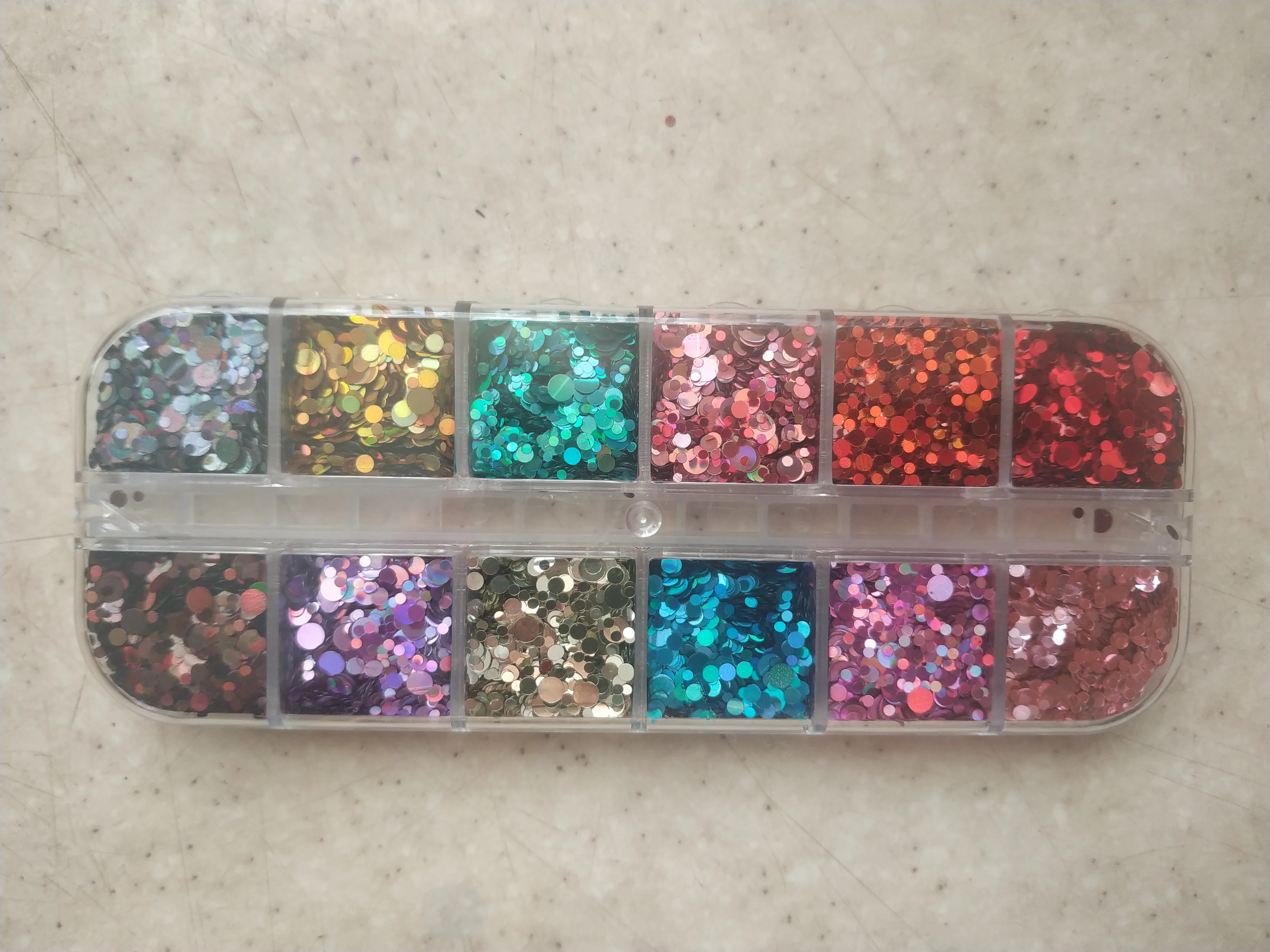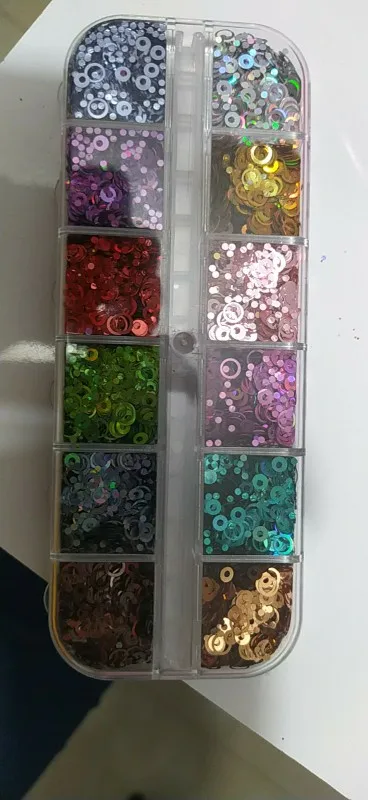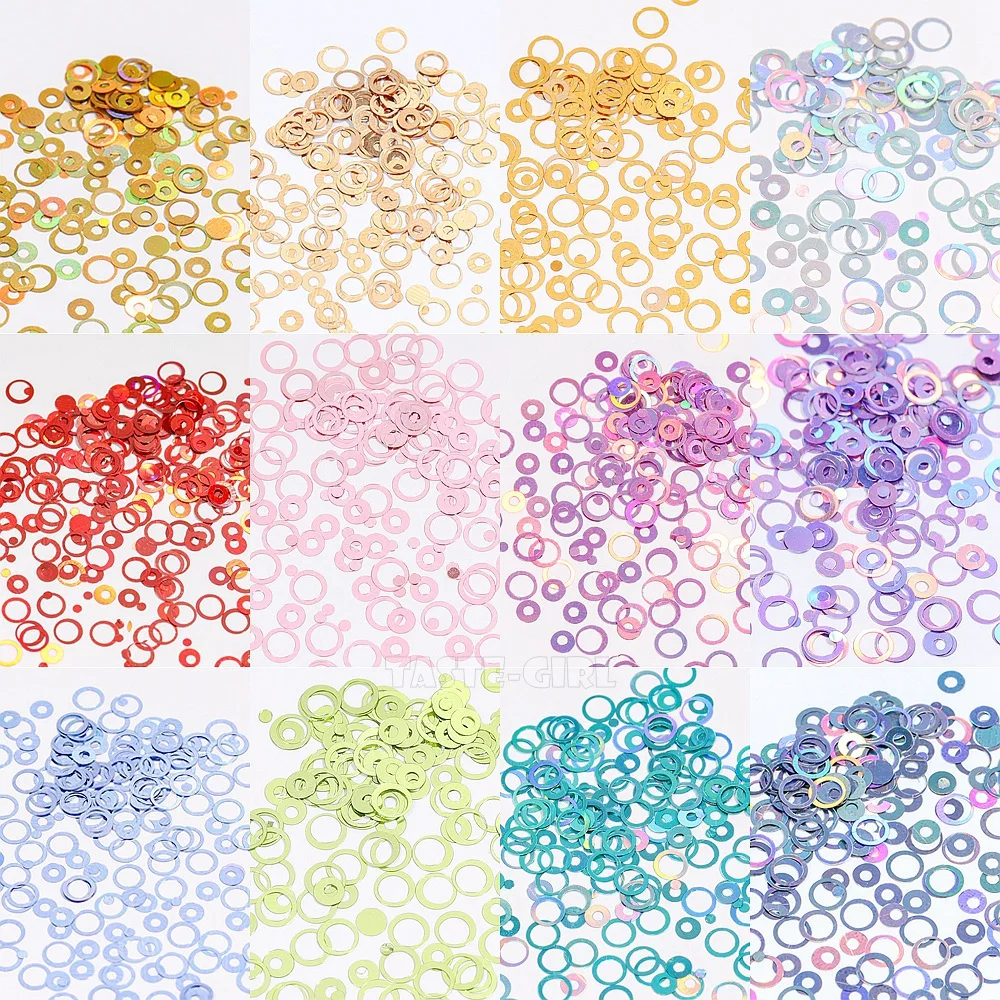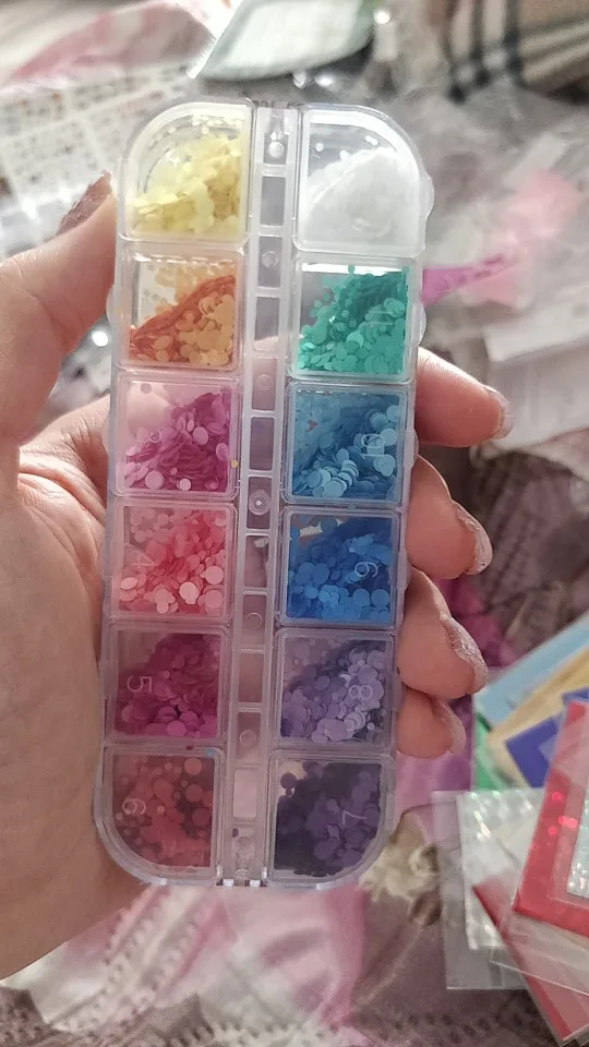 Набор наклеек для ногтей, 12 сетоккоробка, смешанные размеры, сказочные радужные круглые голографические круглые Блестки, Блестки Дизайн ногтей ломтиков блесток