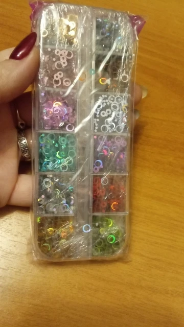 Дорогой продавец, я вас люблю! Очень рекомендую именно этого продавца по трём причинам: 1. он единственный заморочился и ухитрился упаковать стразы изнутри пакетиком т.е. в самой пластмассовой упаковке. Это как??? Мистика. 2. Он насыпал почти до отказа блёсток +500 к карме. 3. Трек отслеживался. Буду заказывать только у вас. Вы удивляете)
