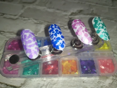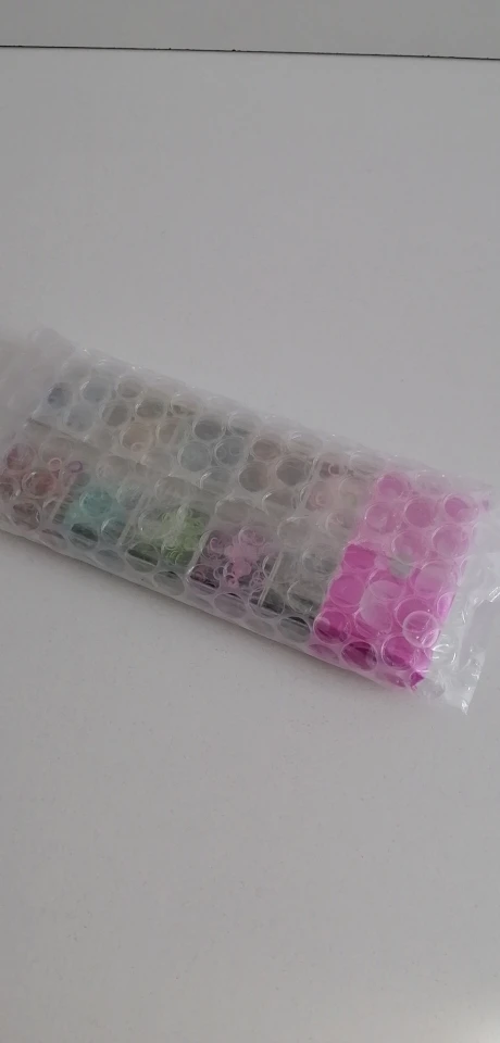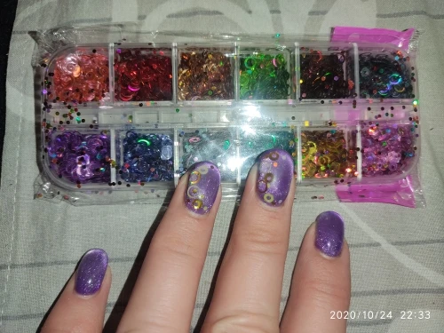 Заказывала дизайн, который как пузырьки. Шло очень долго, видимо на почте потеряли. Пришло через 4 дня после окончания действия защиты покупателя. Но пришло всё целое, очень хорошо упаковано, ничего не просыпалось. Единственное, что наполняемость не совсем как на некоторых фото, а поменьше. Но их всё равно так много, что хватит на много много маникюров. А за такую цену вообще отлично. Так что советую товар и продавца.
