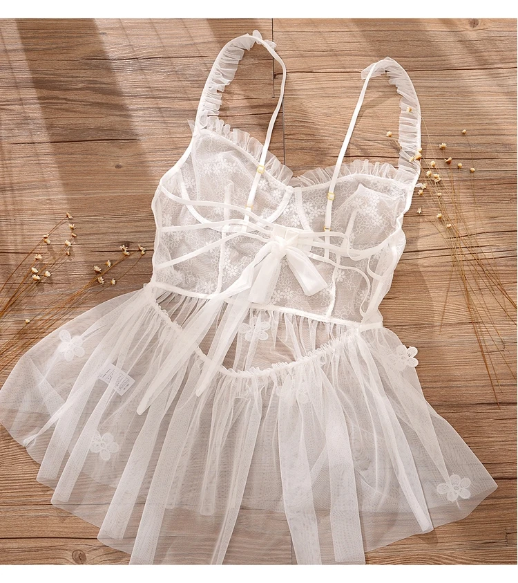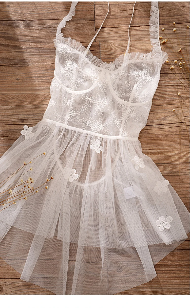 Пикантная Белая французская пикантная ночная рубашка с кружевными лепестками для молодых девушек 2 комплекта