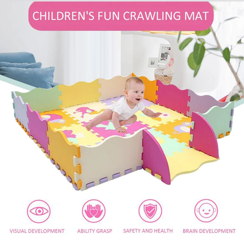 Характеристики:Материал: вспененная прокладка EVAХарактеристики: 25 штук (9 штук коврика, 12 штук забора, 4 штуки углов)Применимо: для детей старше 3 месяцевРазмер одной детали: около 30*30 см/11,81 * дюймаОсобенности:1. Когда малыш ползает, учится ходить и играть, всегда есть неизбежная шишка, поэтому хорошо продуманный коврик для ползания-это must-have каждой осторожной мамы.2. Мягкий материал, высококачественное сырье, наблюдательное познание, безопасный материал.3. Удивите рост ребенка, но также Позаботьтесь о болях, вызванных ползанием ребенка.4. Мягкие и жесткие-пятна молока и моча не проникают для эффективного предотвращения роста бактерий.5. Строгий дизайн все для малыша, удивляет печатный рисунок, благодаря чему малыш не скользит без мертвых углов.