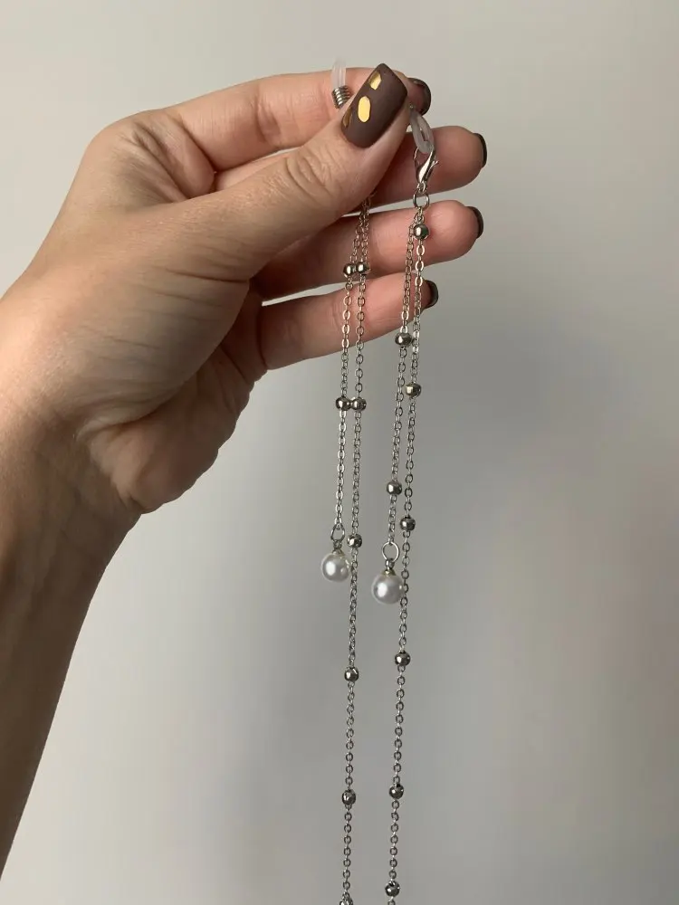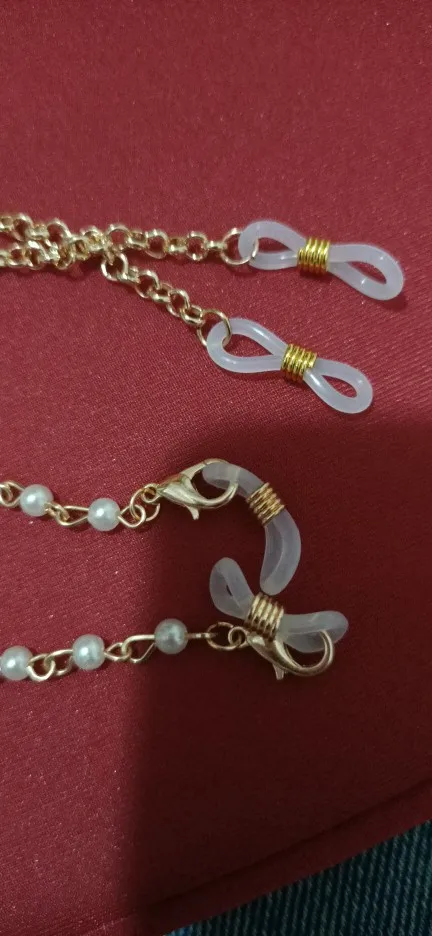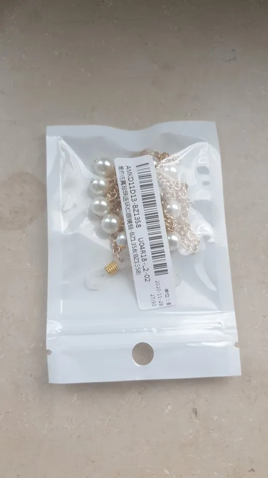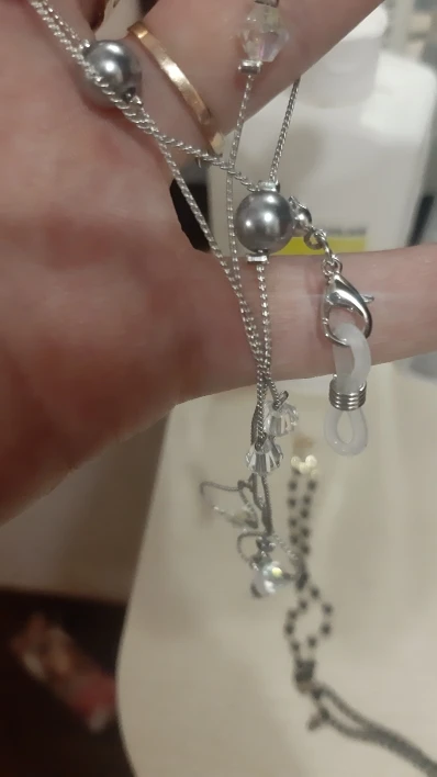 Заказывала 15.01, пришла 9.02. Пришла в зип пакете. Довольно неплохая цепочка на первый взгляд. Очки держит хорошо. Держатели селеконовые, мягкие, качественные. Жемчуженки симпотичные, даже все кристалики на месте и хорошие)). Цепочка длинная. Надеюсь прослужил хорошо)