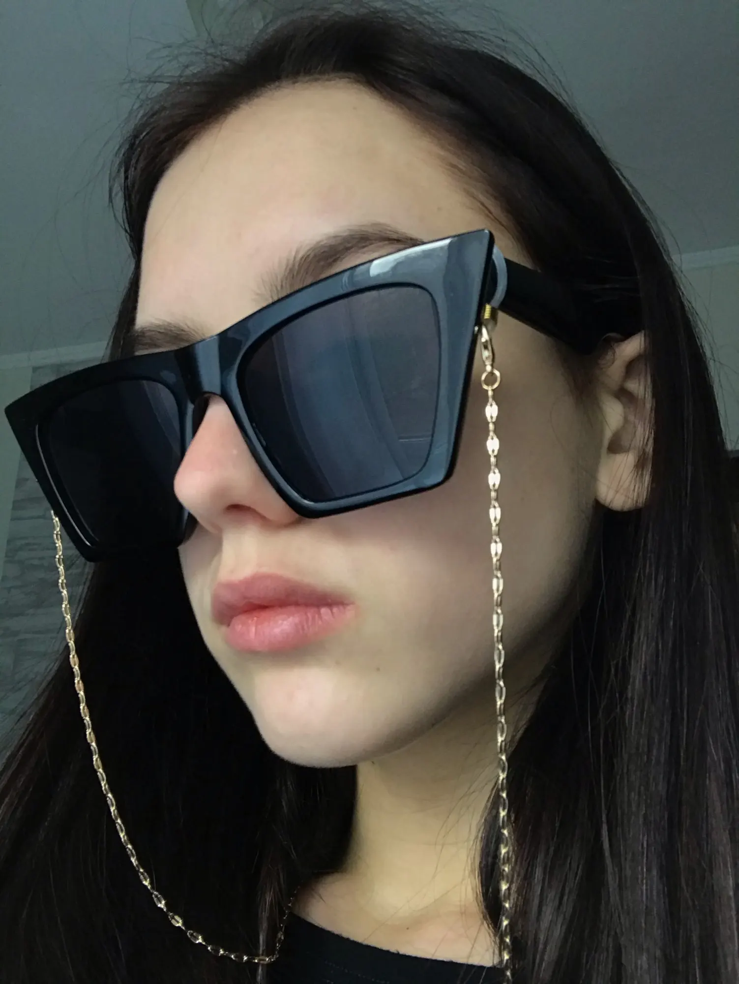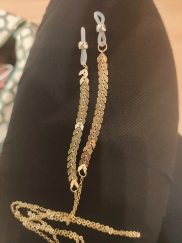 Действительно, действительно мило и стильно, выглядит потрясающе как деталь, делает очки более холодными :)) Отлично смотрится с черными очками, так как насадка в конце черная. И цвет цепочки действительно красивый, блестящий серебристый. Мне нравится!
