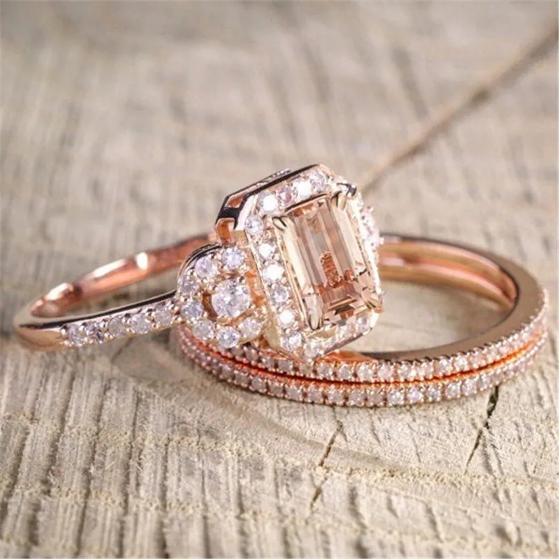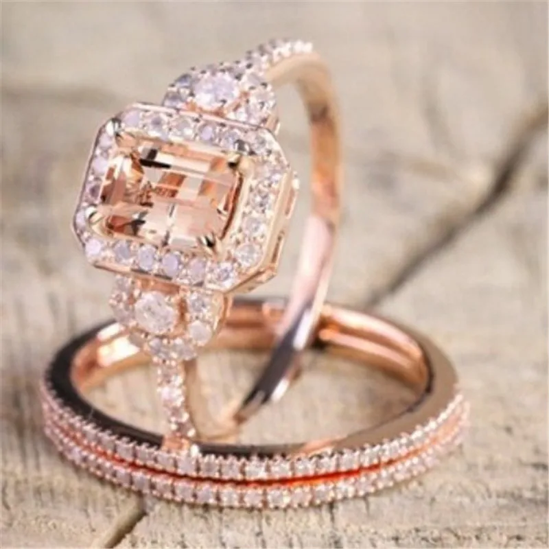 Кольца СС Женские винтажные ювелирные изделия цвета розового золота наборы кольцо прямоугольник кубического циркония свадебные помолвки Anillos Mujer CC2393