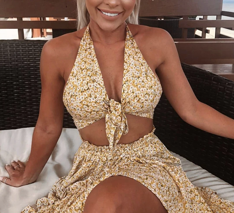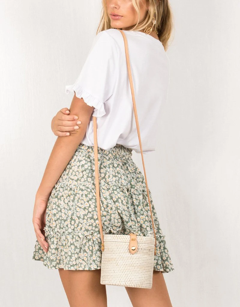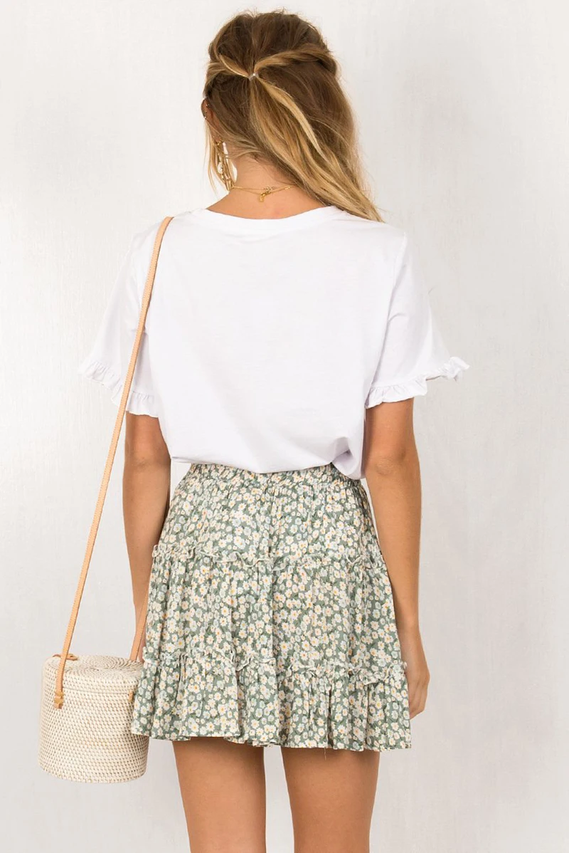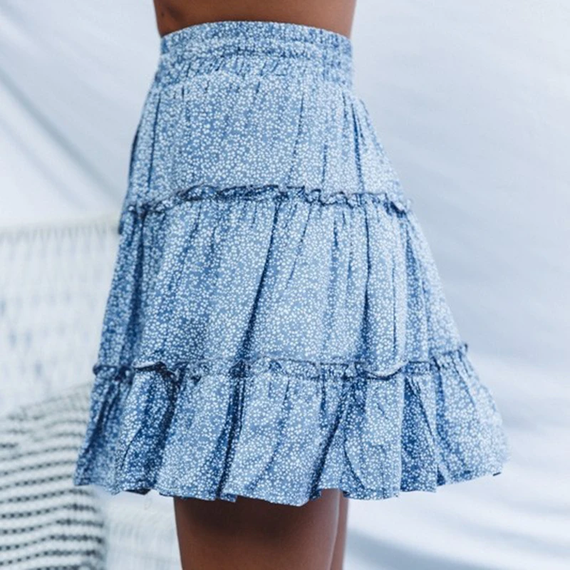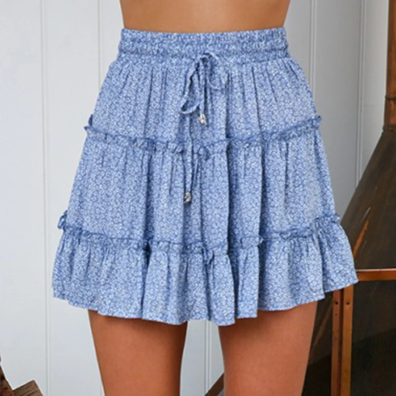 Covrlge, летняя повседневная короткая юбка с высокой талией в стиле бохо, женская модная пляжная юбка с оборками и цветочным принтом WQB005