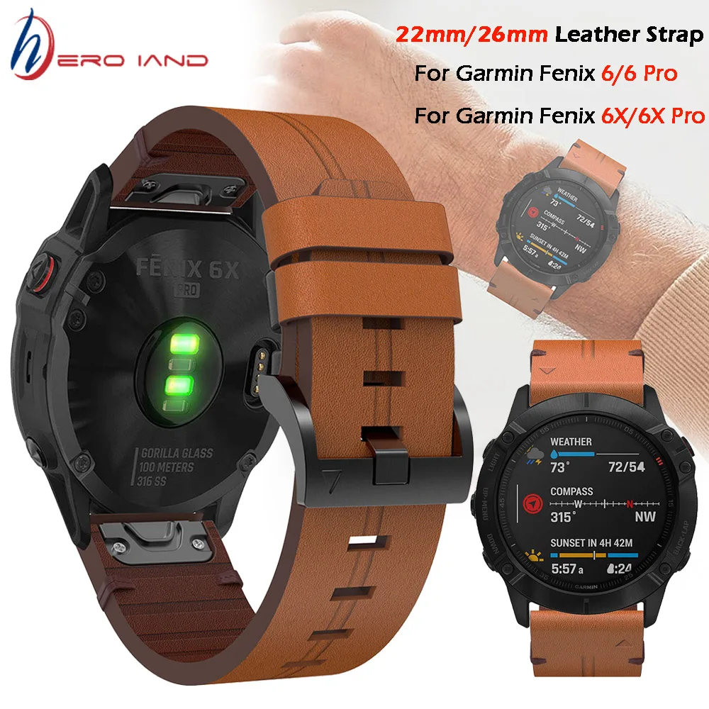 Ремешок кожаный для смарт-часов Garmin Fenix 7 7X 7S 5 5X Plus 5S 6 6X Pro, 20 22 26 мм