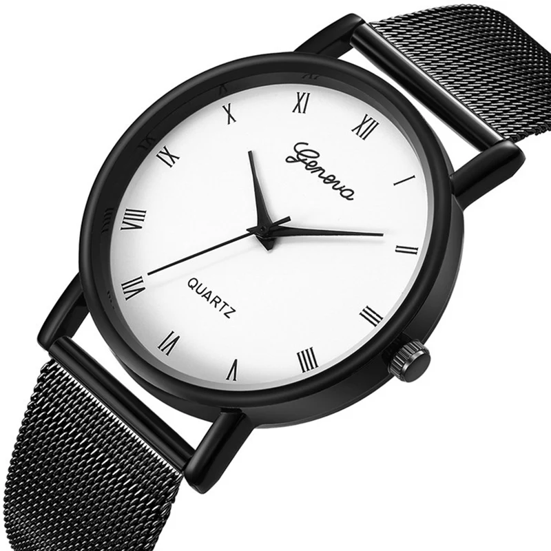 2020 модные женские часы, черные кварцевые часы для мужчин и женщин, унисекс сетка, высокое качество, ремешок из нержавеющей стали, подарок, Reloj Hombre Saat