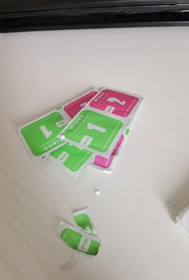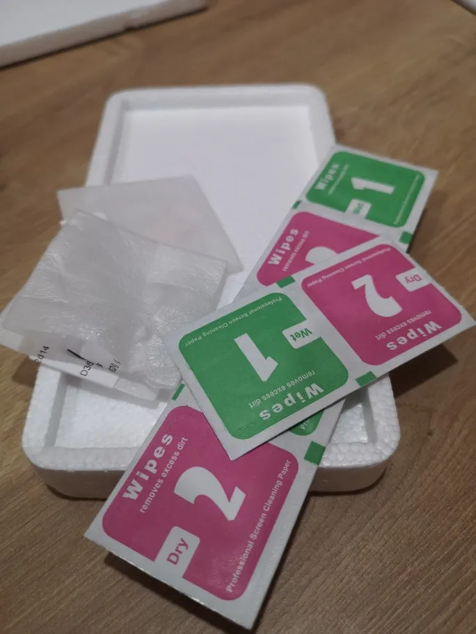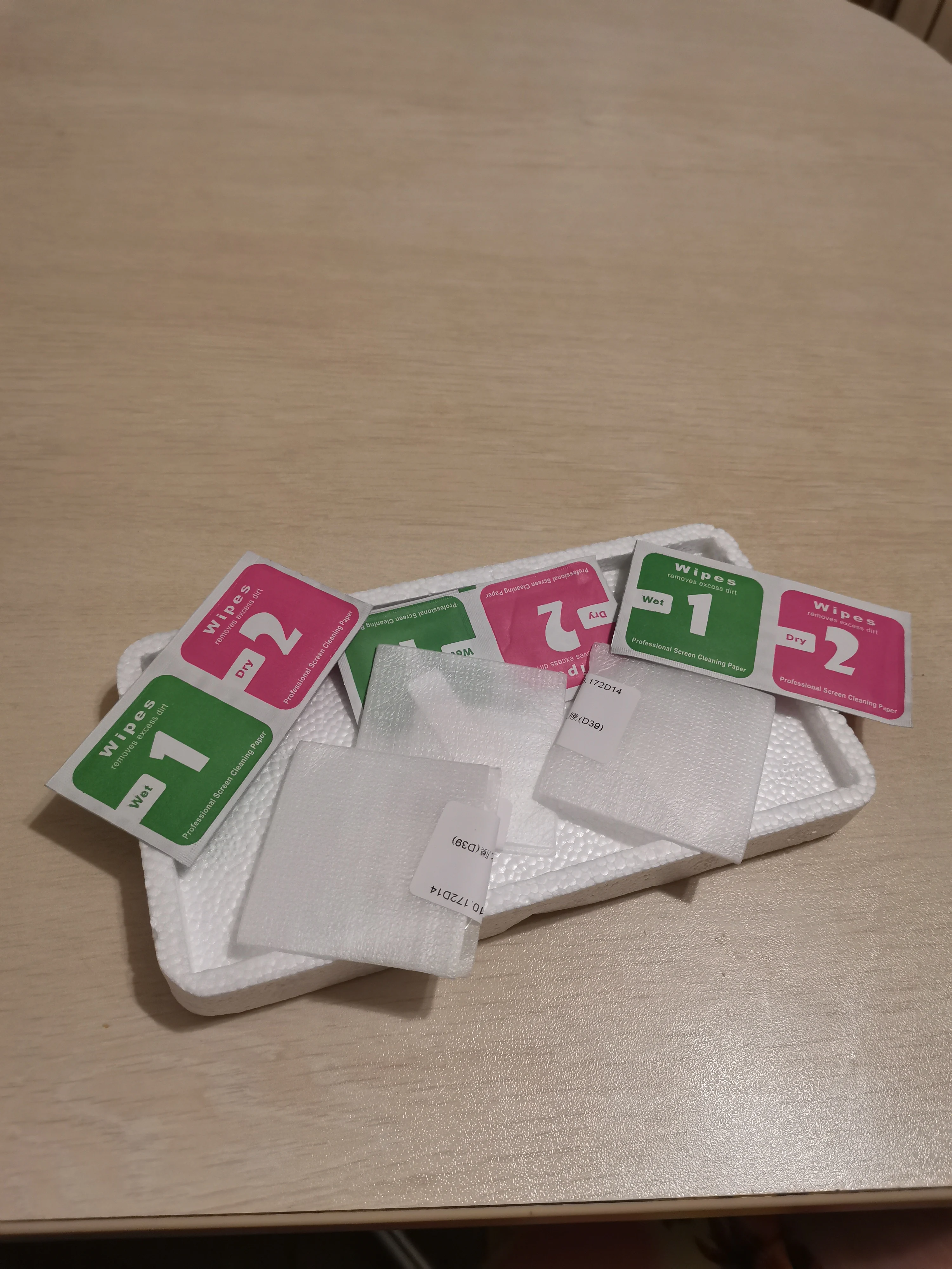 Товар дошёл очень быстро, спасибо продавцу. Три стекла с тремя комплектами салфеток. Рекомендую продовца и товар.