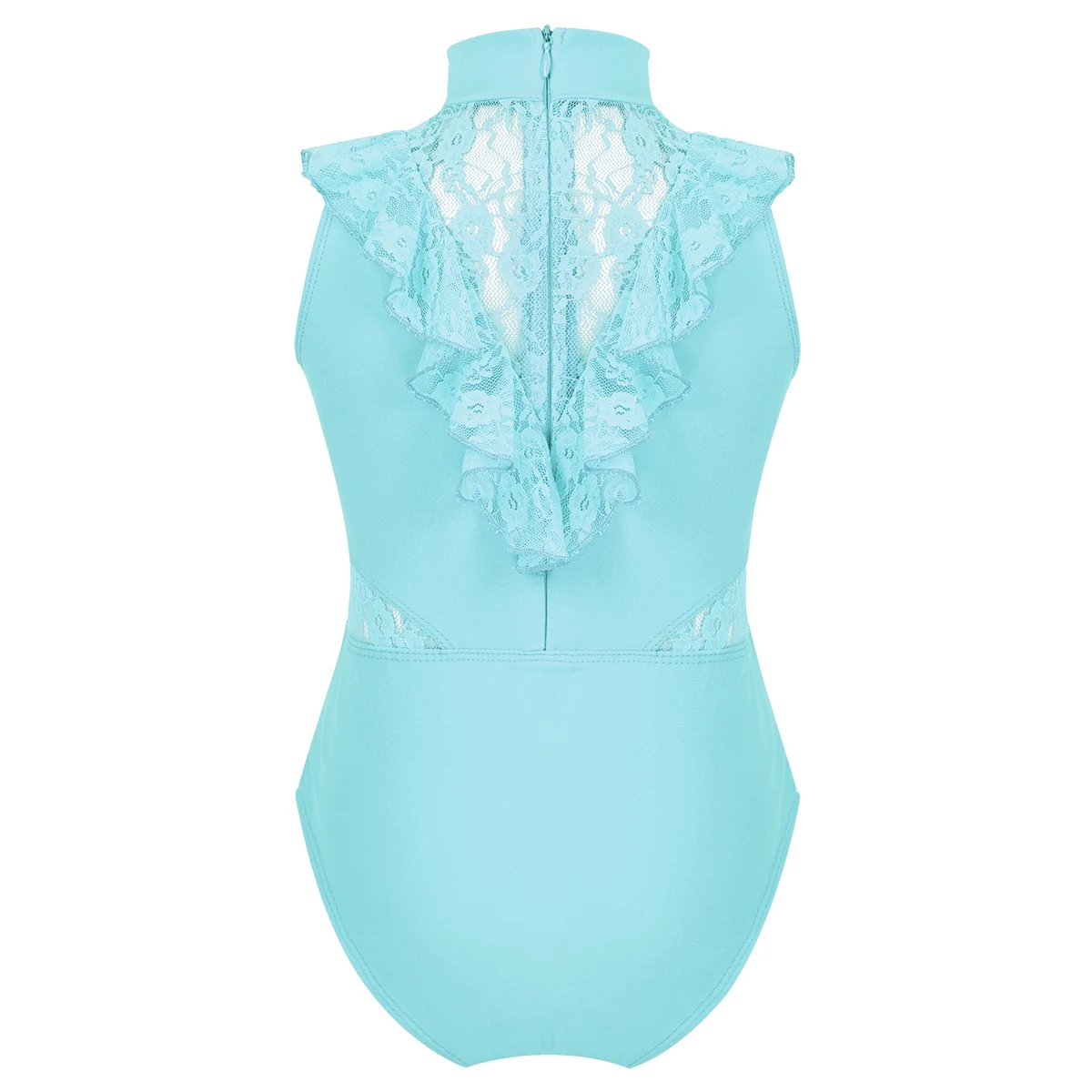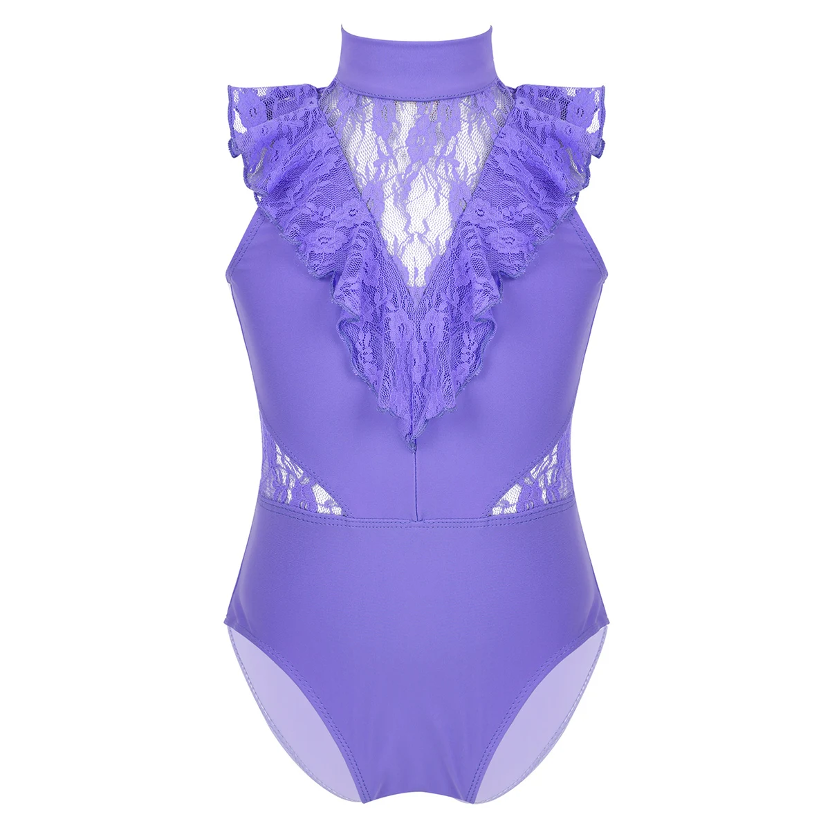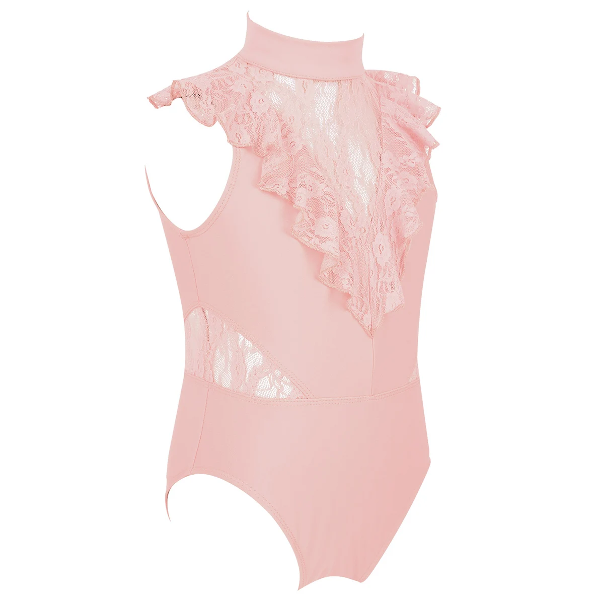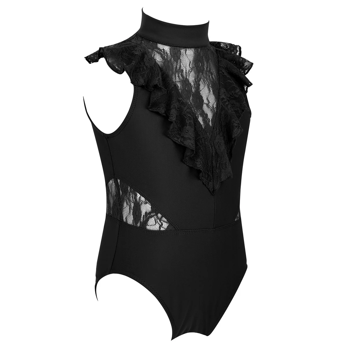 Детский гимнастический трико для девочек, балетный костюм с высоким воротником, современный танцевальный боди, танцевальная балетная пачка для детей