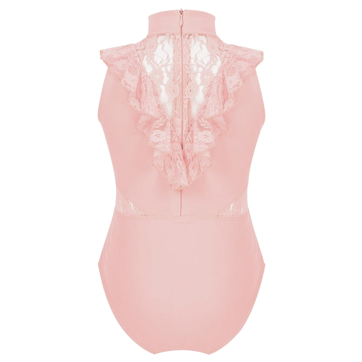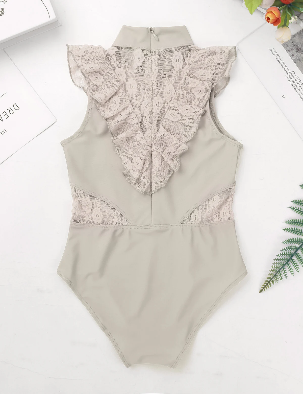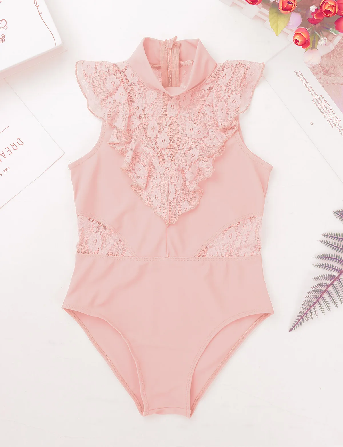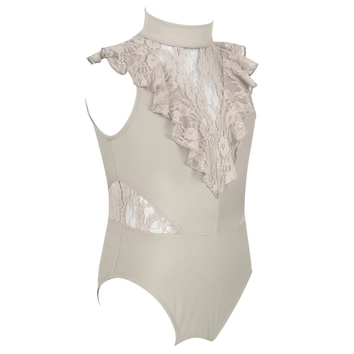 Детский гимнастический трико для девочек, балетный костюм с высоким воротником, современный танцевальный боди, танцевальная балетная пачка для детей