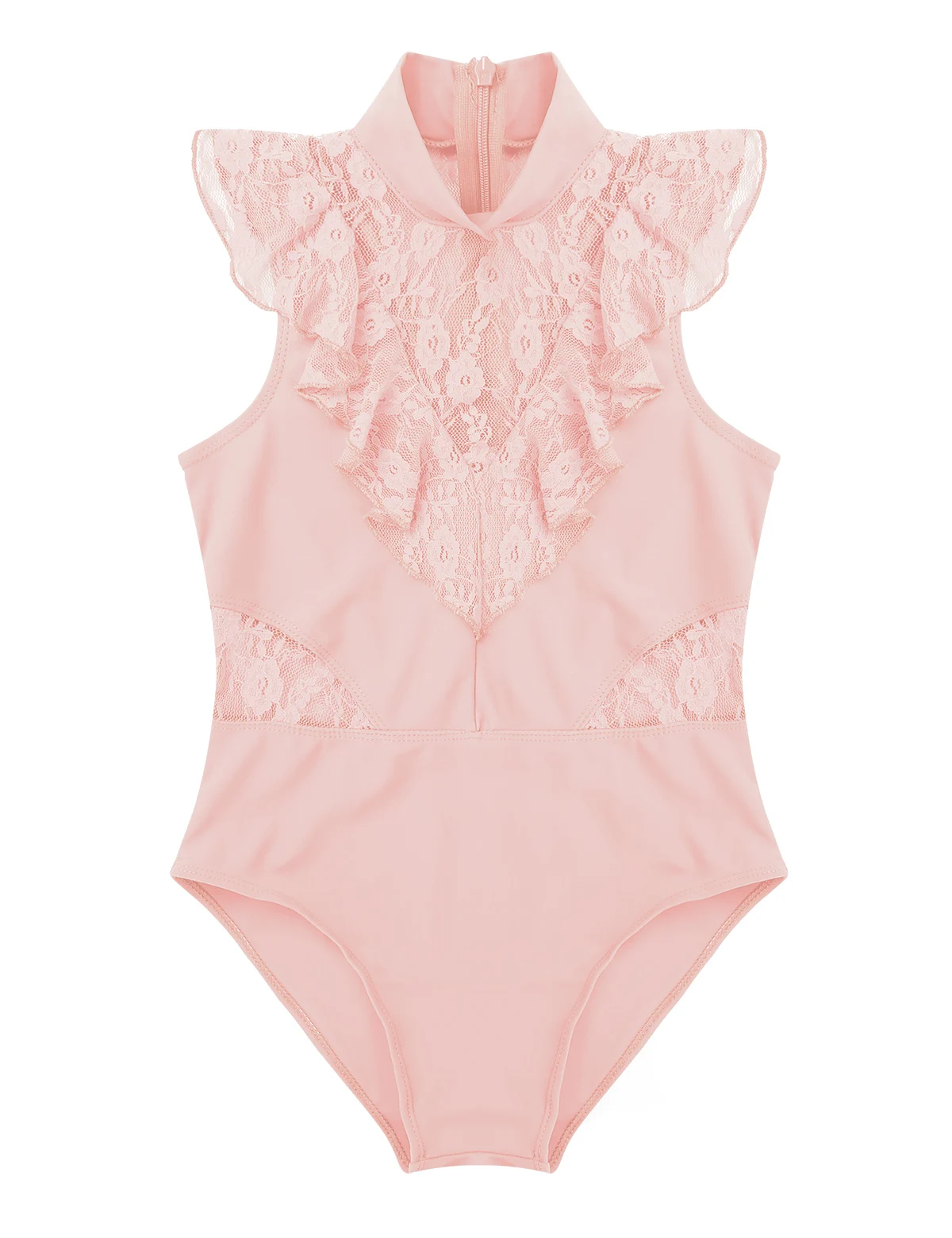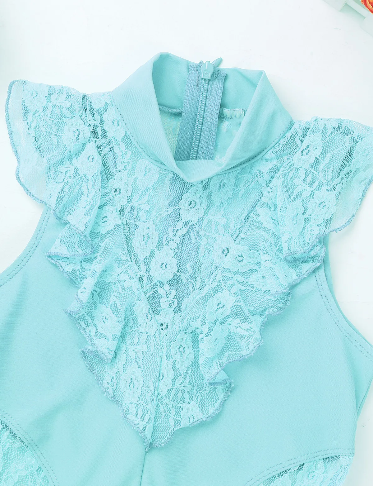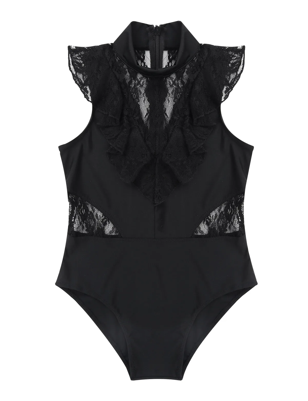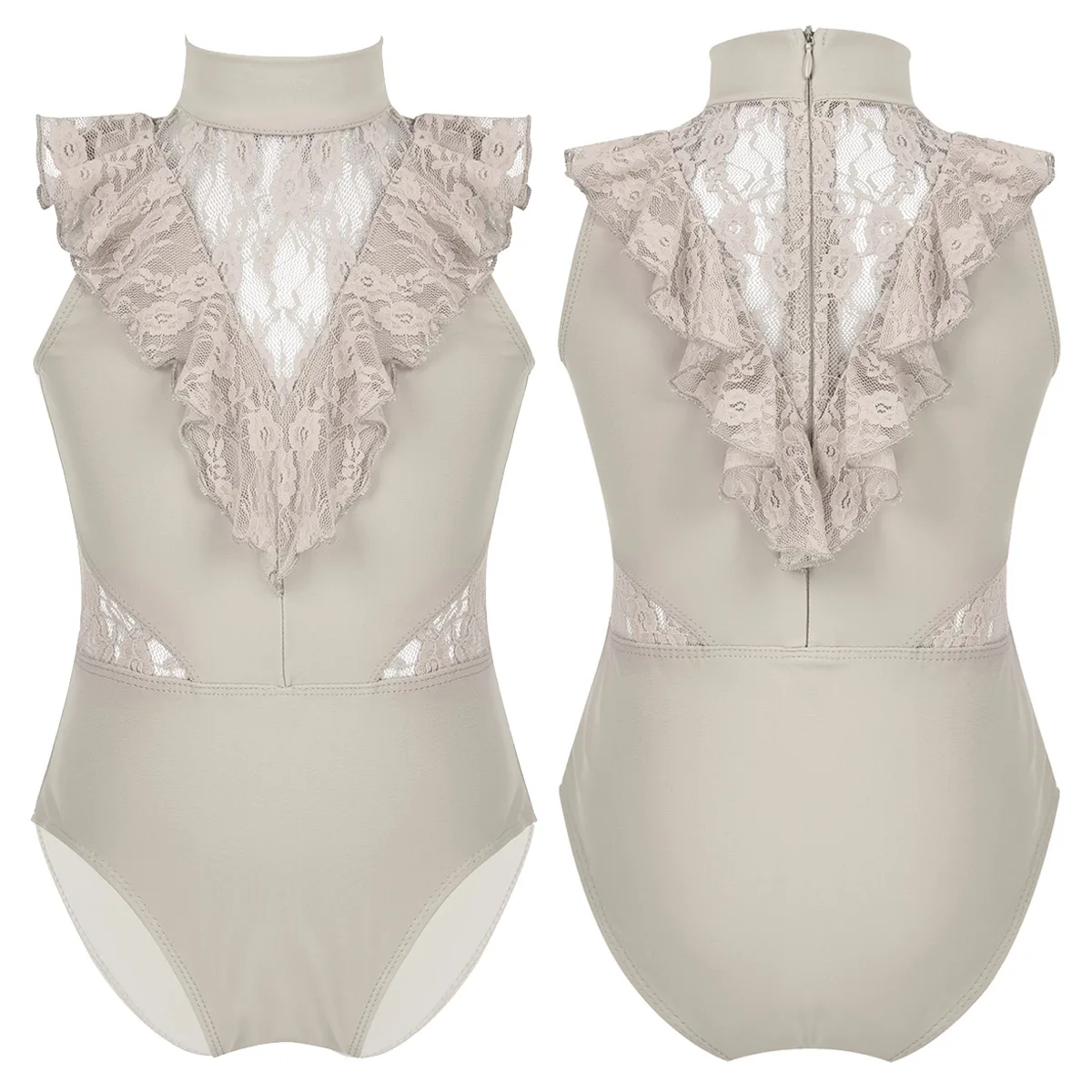 Детский гимнастический трико для девочек, балетный костюм с высоким воротником, современный танцевальный боди, танцевальная балетная пачка для детей