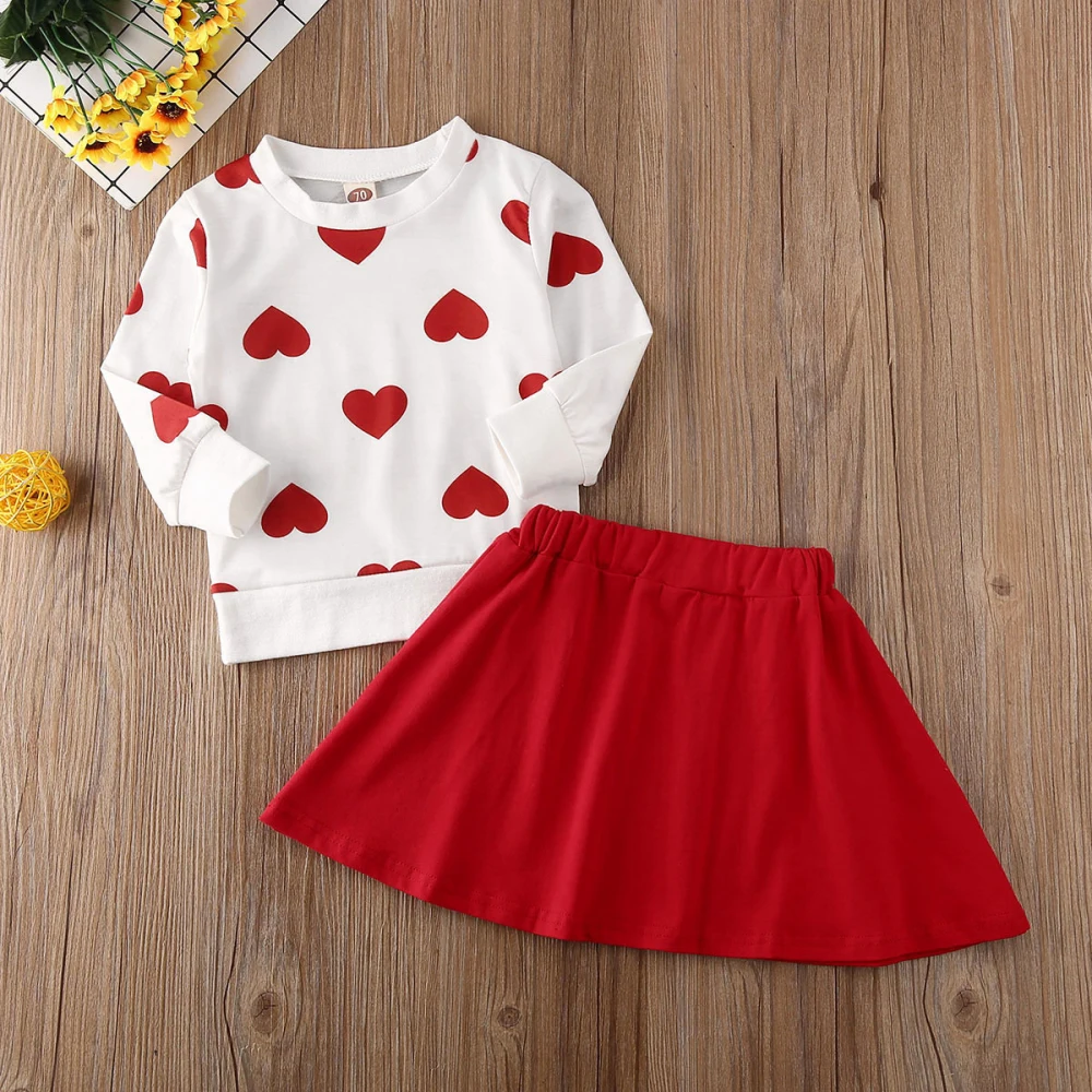 Citgeettвесенняя одежда для маленьких девочек на День Святого Валентина; Топ с сердечком; Футболка; Платье; Красный комплект юбки