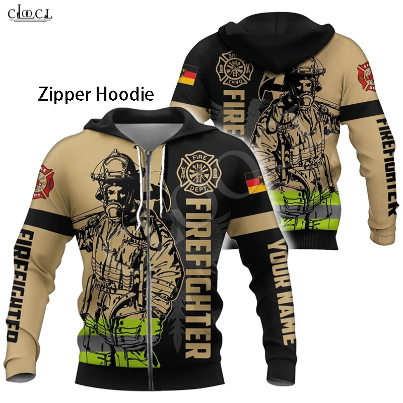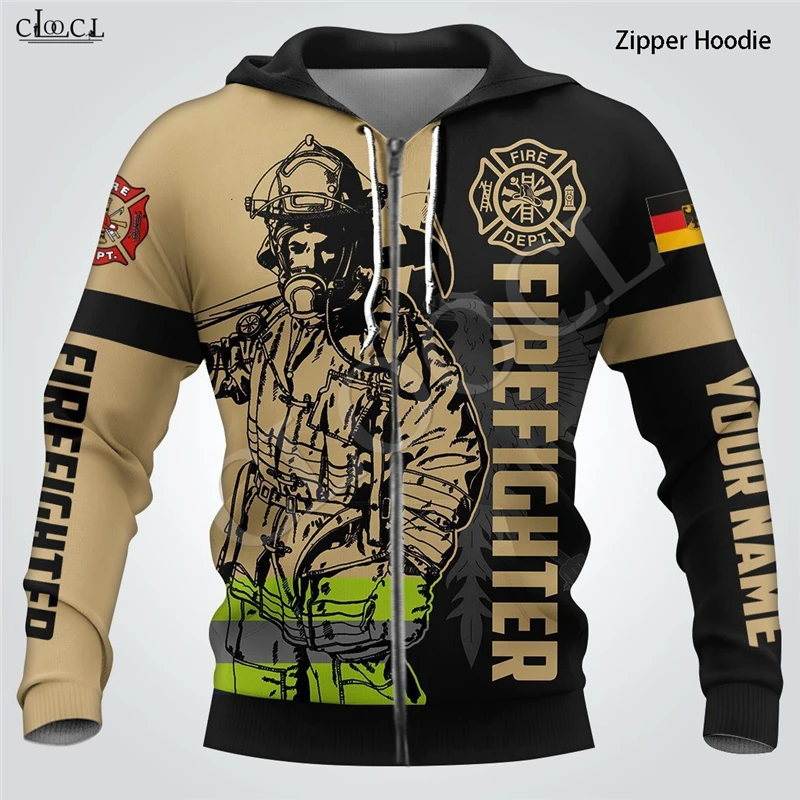 Толстовка мужская, женская, с 3D-принтом пожарного, с длинным рукавом, на молнии, 2021