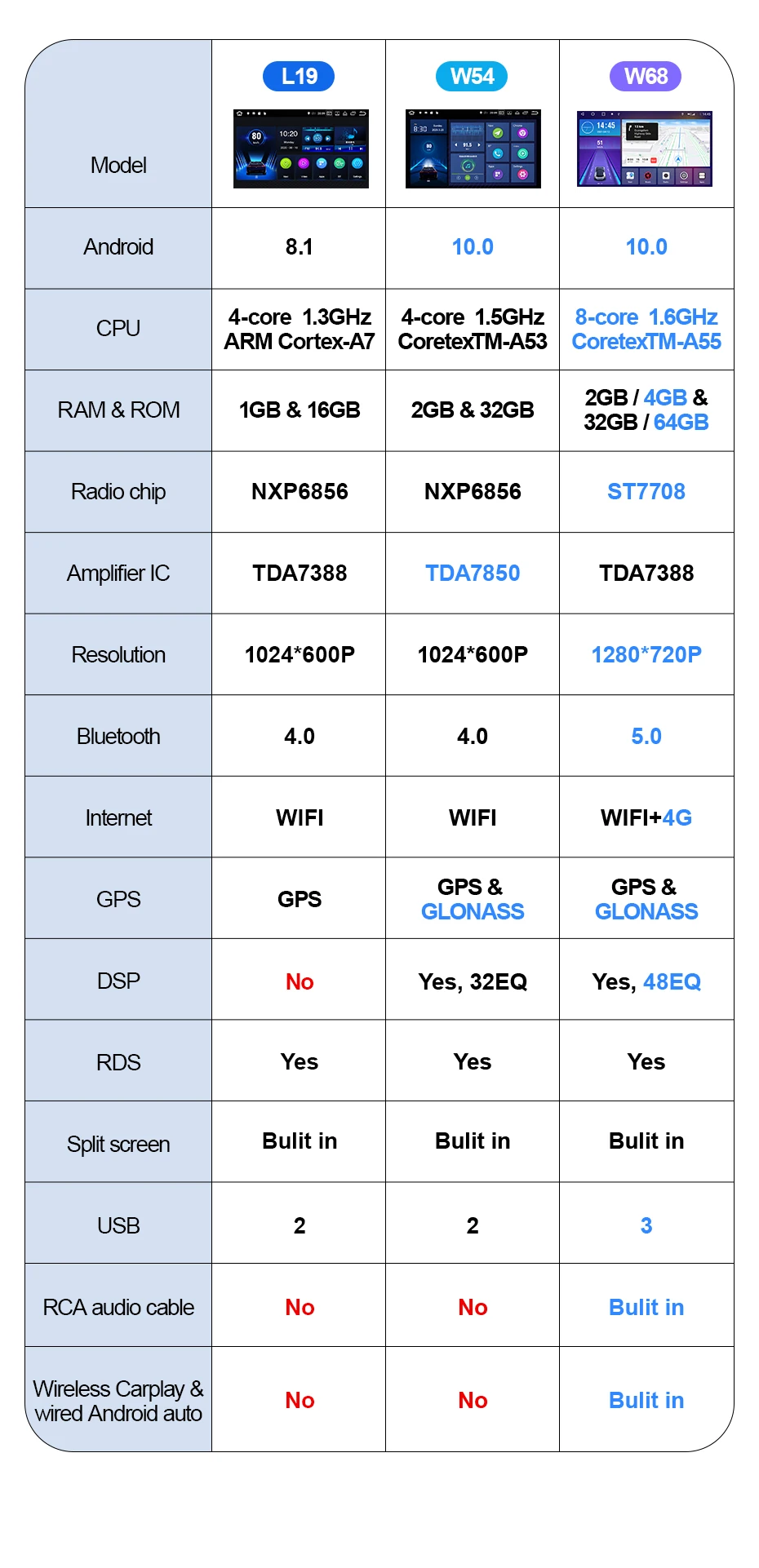 Заказал 1гиг оперативки и 16 гигов памяти. Всё пришло довольно быстро. Единственное, камеру заднего хода отправили немного позже отдельной посылкой. Магнитола работает отлично, не тормозит. Одновременно работает навигация, через Wi-fi, раздаю с телефона и также одновременно слушаю музыку. Смысла переплачивать за более дорогие модели абсолютно не вижу. Берите, не пожалеете. Продавец хороший, добросовестный.